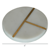 Made of white marble with brass accents, this set of modern round coasters offers soft edges and a substantial weight. Set of 4 Dimensions: 4 x 4 x 0.375
