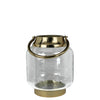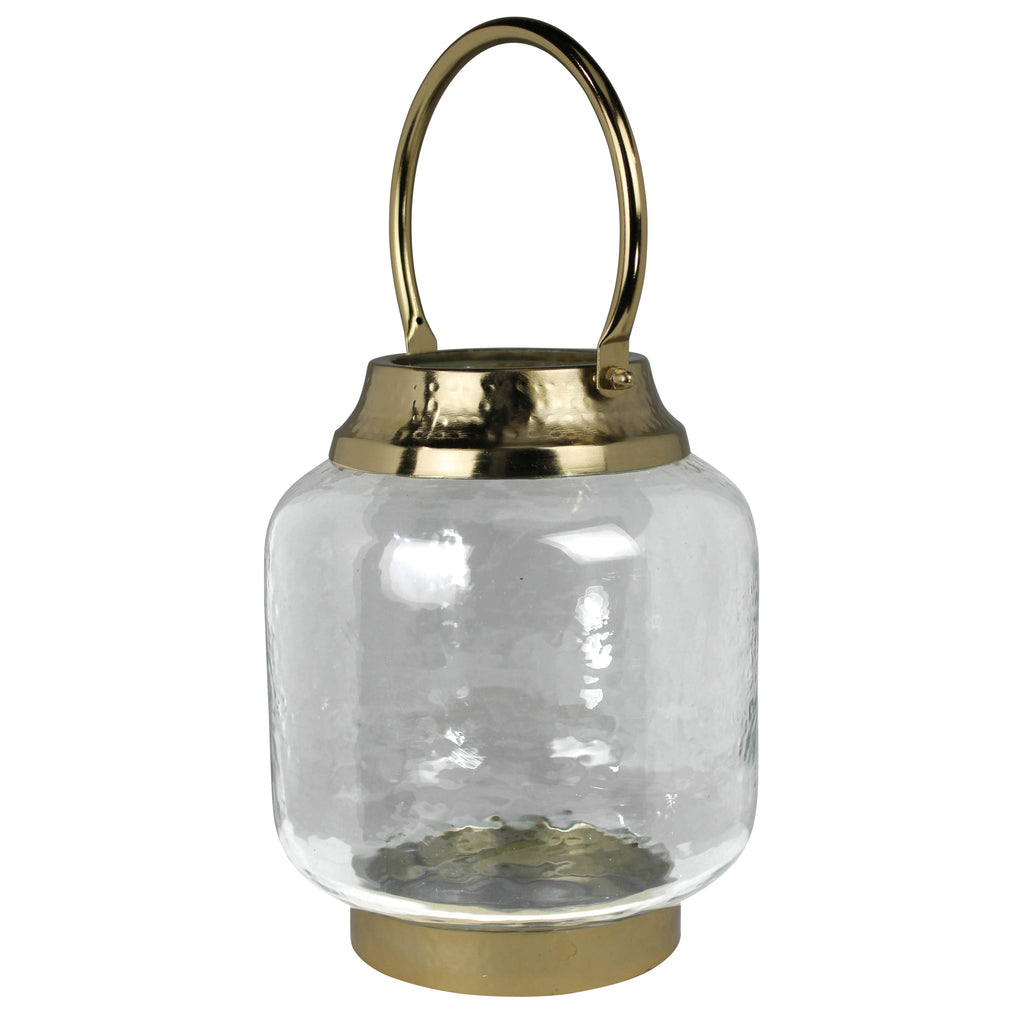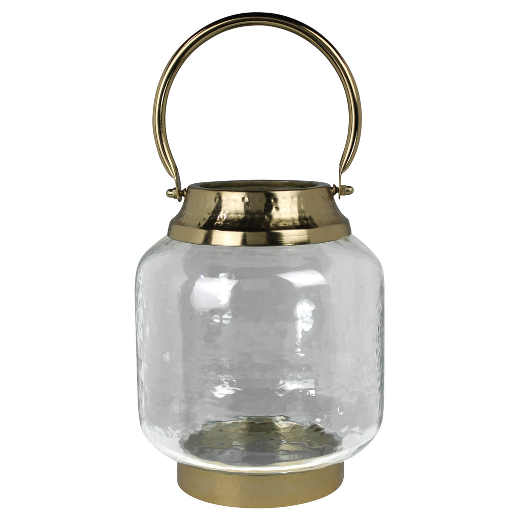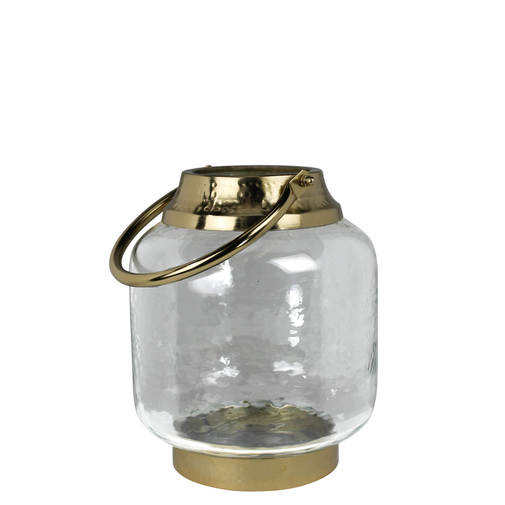 A large glass lantern with a modern design, featuring brass banding and a sturdy handle. Ideal for both indoor and outdoor use, its sleek, contemporary style adds sophistication, perfect for creating a warm, inviting glow. 5” Drop Handle.Dimensions: 8 x 8 x 9.5