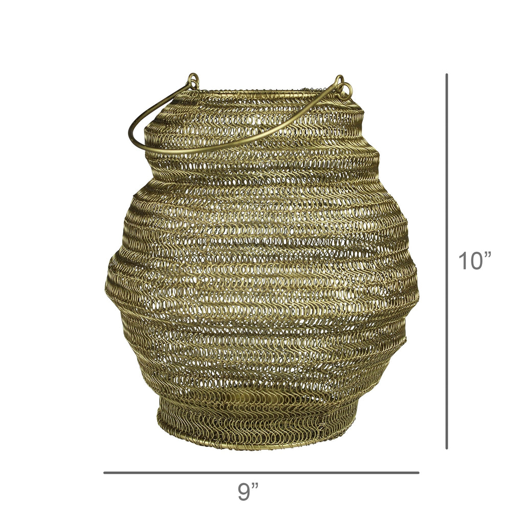 Cleverly woven wire in a bright, brass finish creates an ethereal glow and adds textural accent to any room. Dimensions: 9 x 9 x 10