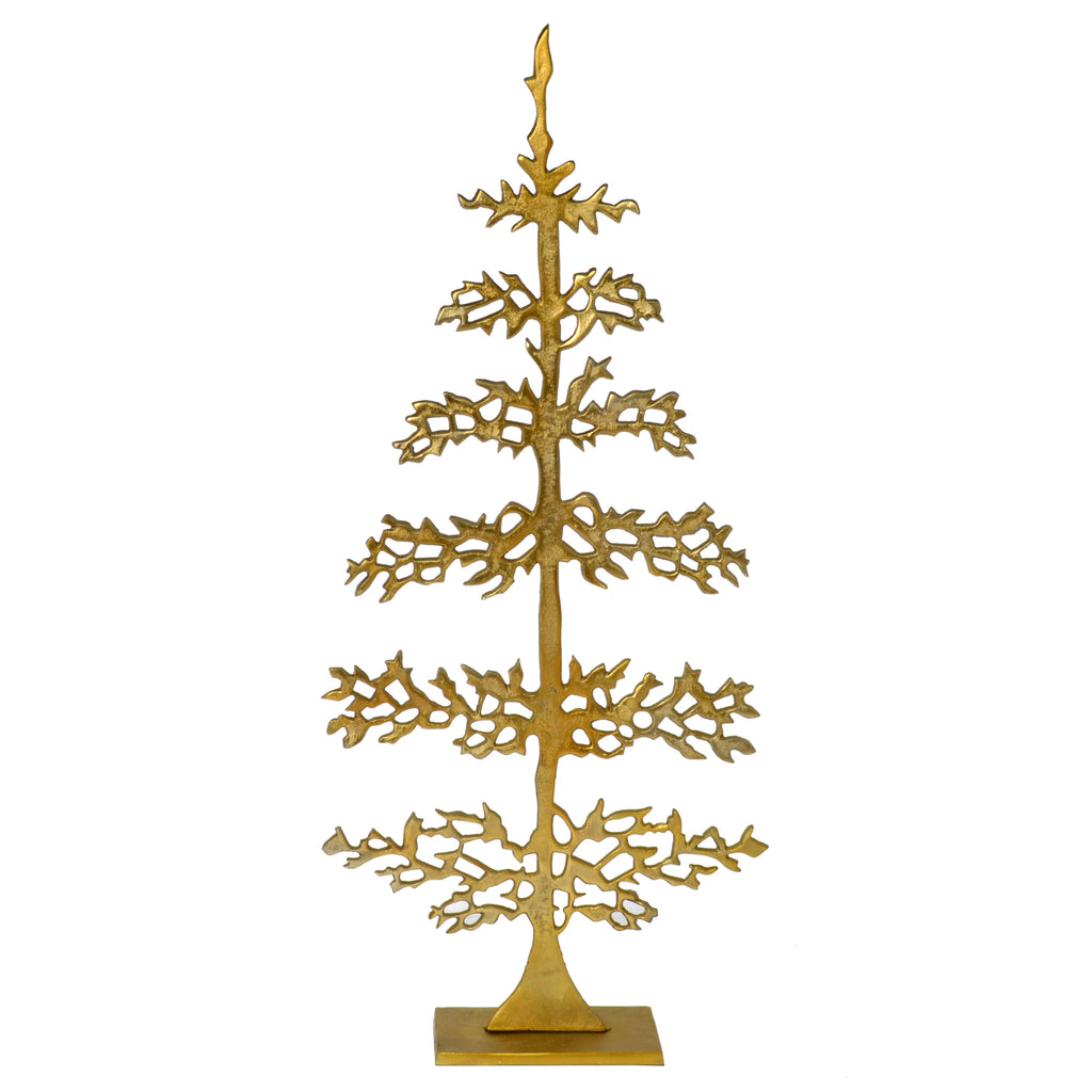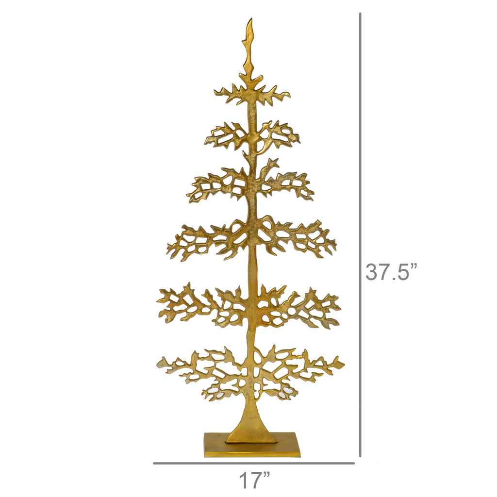 A silmple silhuette in a slender profile with a bright gold finish creates a contemporary element for holiday décor. Striking alone or massed to create a gilded forest. .Dimensions: 17 x 4.25 x 37.5