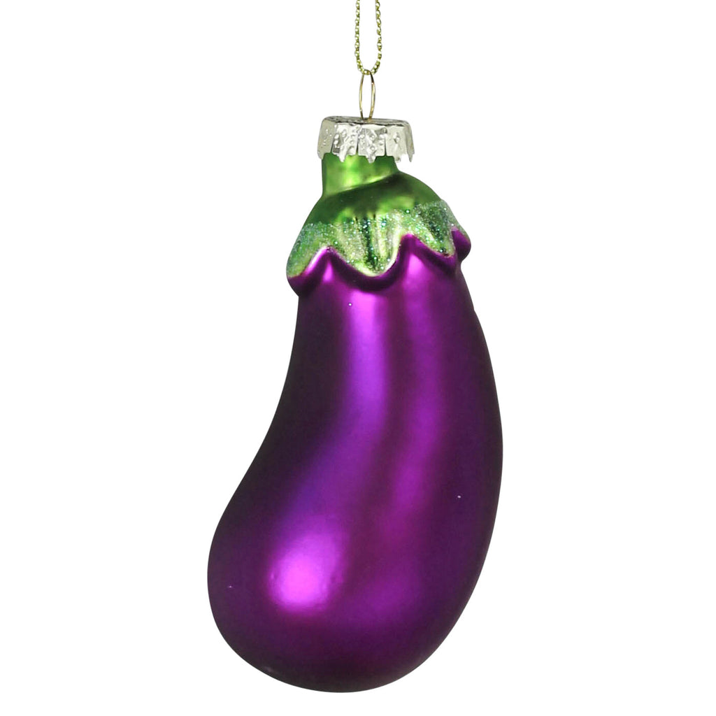 Elegant and unique, the glass eggplant ornament adds a playful touch to your holiday decor. Handcrafted with vibrant colors and delicate details, it’s a charming conversation piece that blends whimsy with sophistication. .Dimensions: 2.25 x 2 x 4