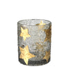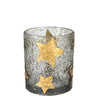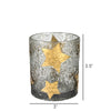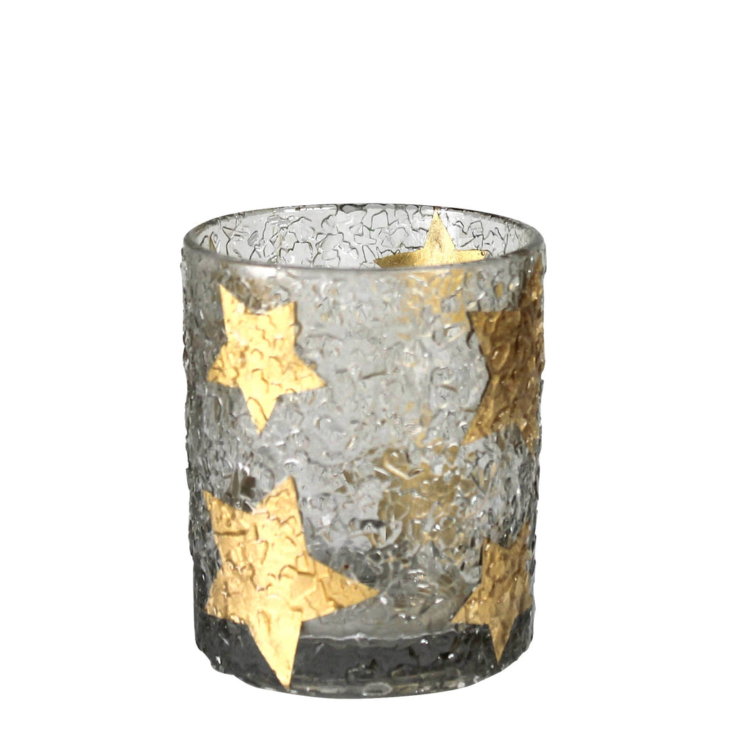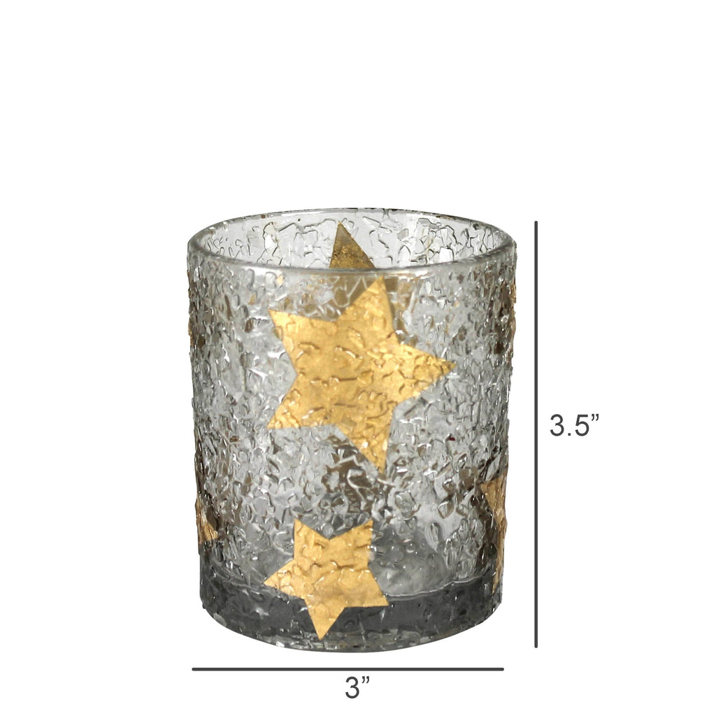 Gold stars are enameld onto simple forms with a layer of glass chips which adds extra shimmer to this festive hurricane. .Dimensions: 3 x 3 x 3.5