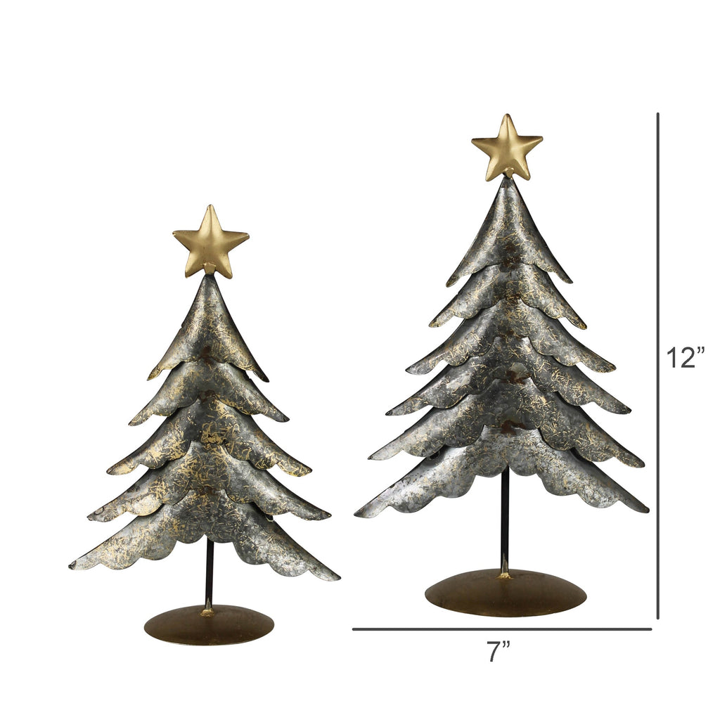 Slim profiles of galvanized metal boughs are dressed up with gold texture and a gold star, the perfect blend of materials for rustic chic holiday décor. Sm: 6x3x.95, Lrg: 7x4x12.Dimensions: 7 x 4 x 12