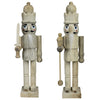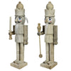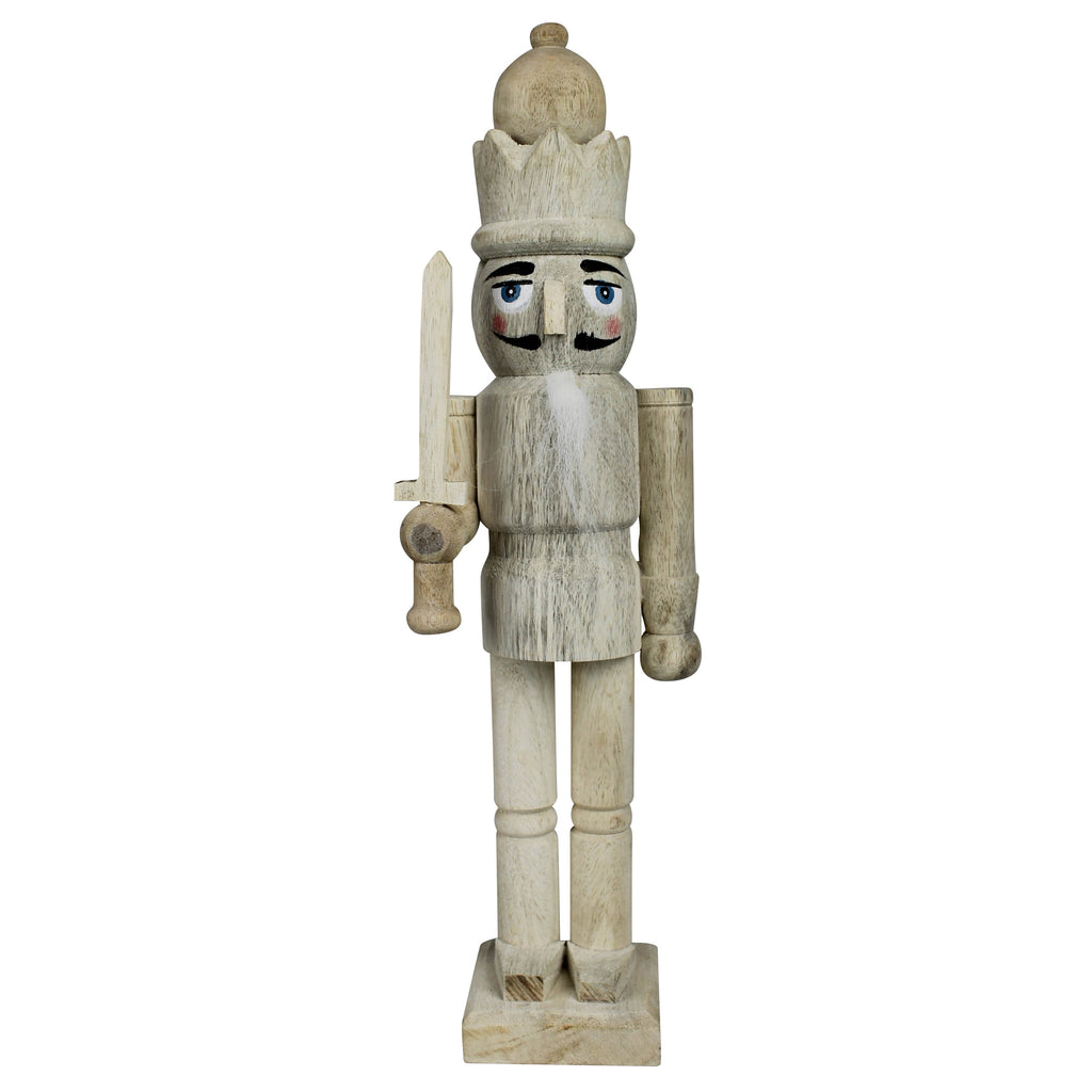This set of 2 nutcrackers are made of unfinished wood with subtle embellishments are simple nod of seasonal decor. .Dimensions: 3 x 3 x 15