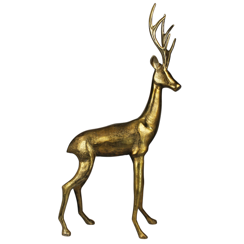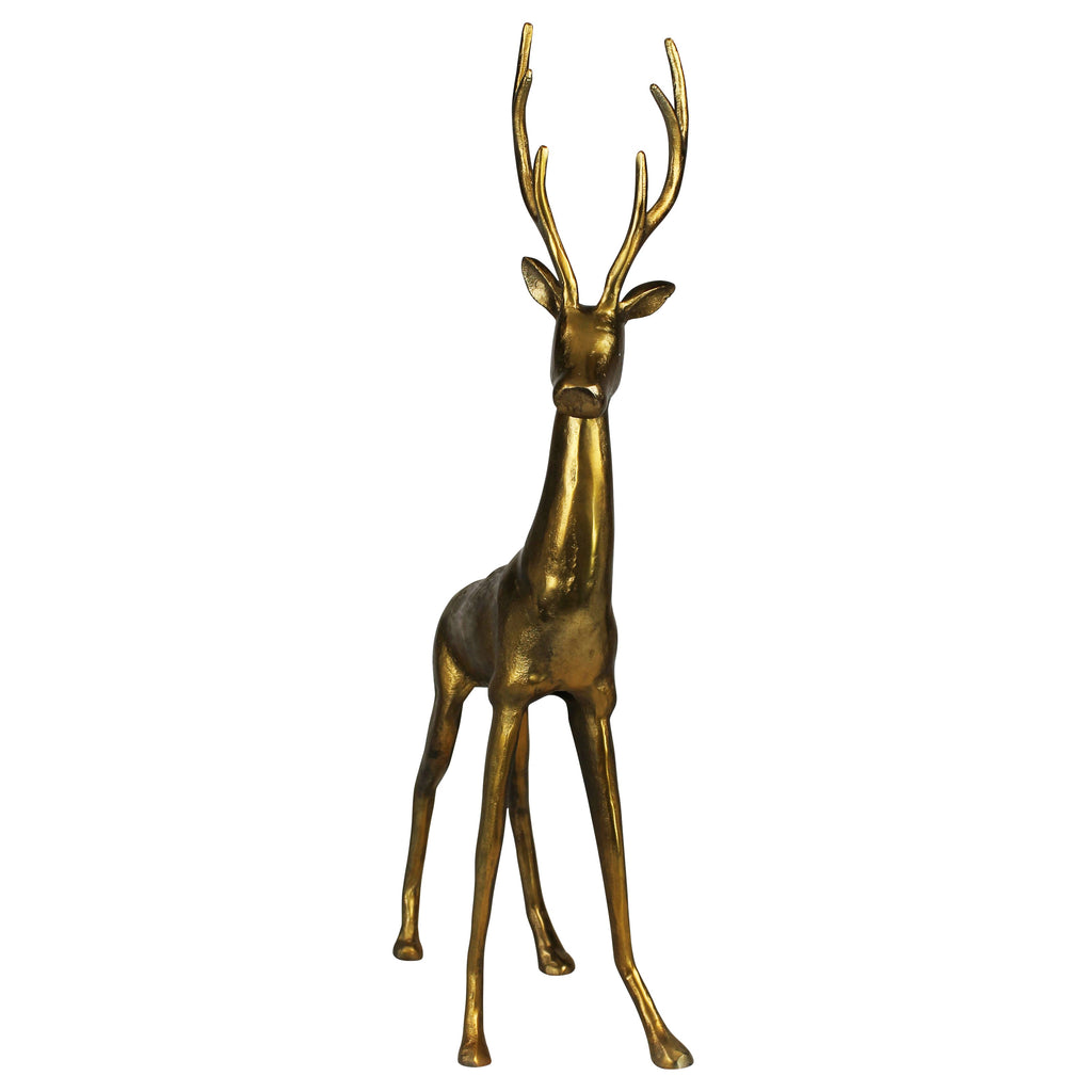 Oversized stag figure with a sleek brass finish, combining bold, modern design with timeless style. The intricate detailing and majestic stance make it a striking statement piece, perfect for adding a touch of luxury and sophistication to any space. .Dimensions: 20 x 6 x 37