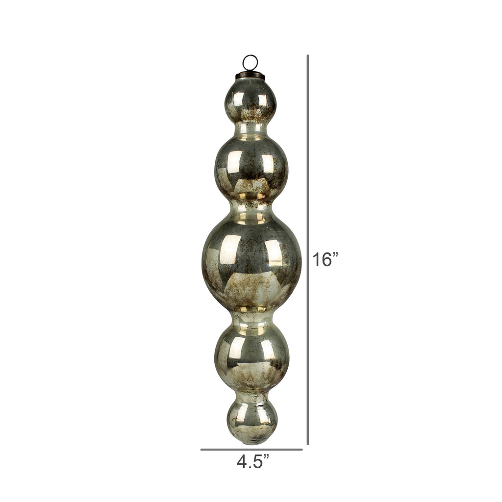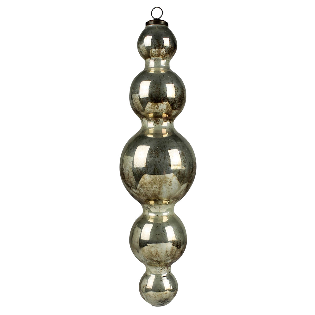 This large scale ornament with an antique silver mercury finish it too large to hang on a tree and instead meant to adorn and window or entry way. Even better when amassed. .Dimensions: 4.5 x 4.5 x 16