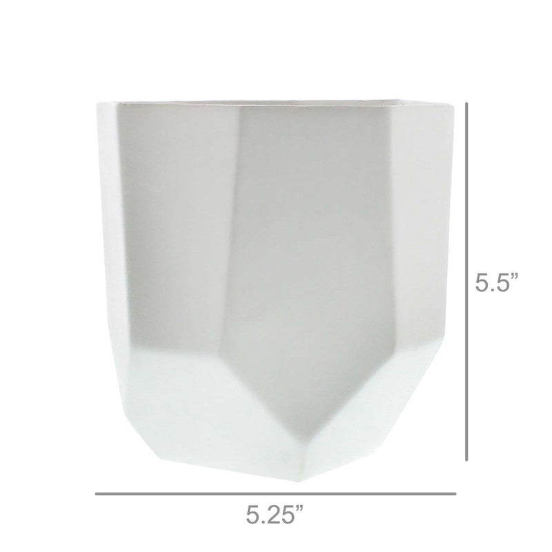 The organic yet calculated facets of quartz crystal formations receive the gratitude for inspiring this striking ceramics collection. A matte white glaze pays homage to the mineral itself while the geometric surfaces and plains suggest the perfectly Dimensions: 5.25 x 5 x 5.5