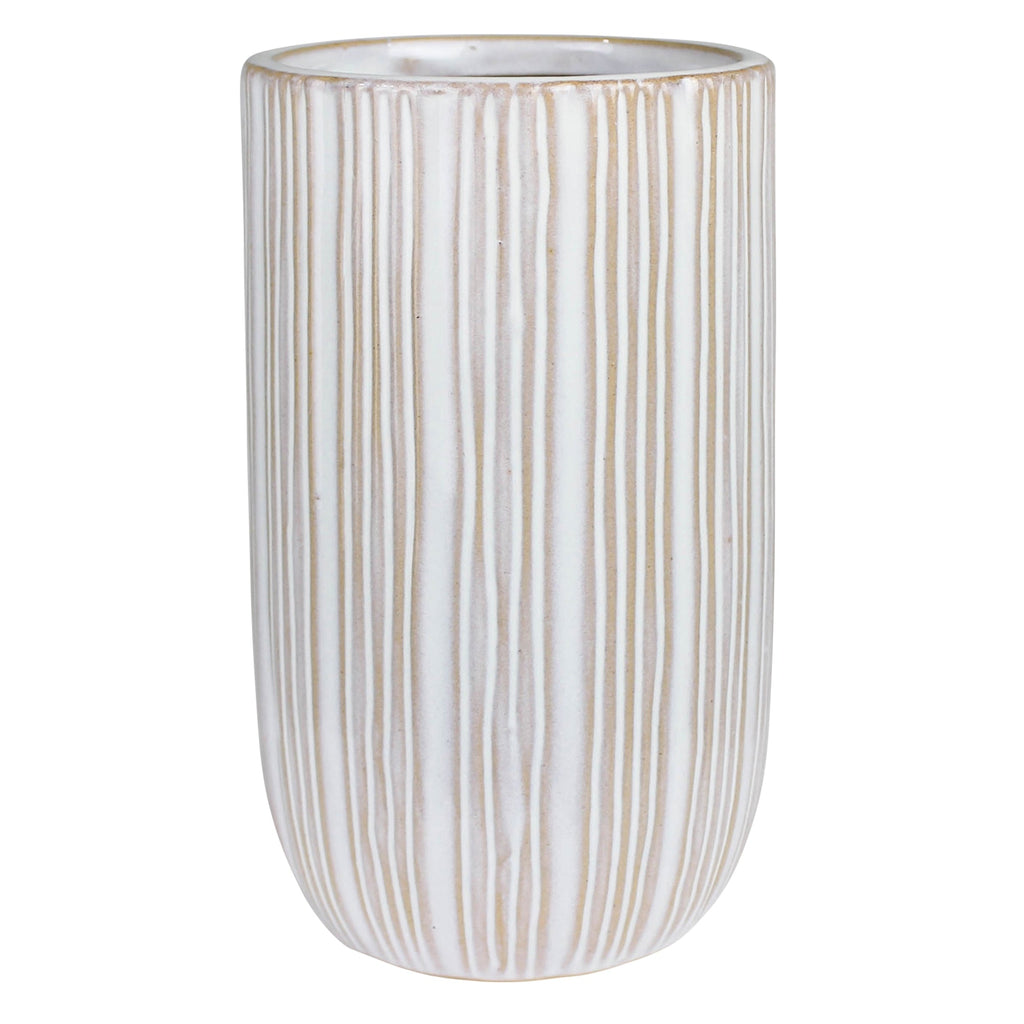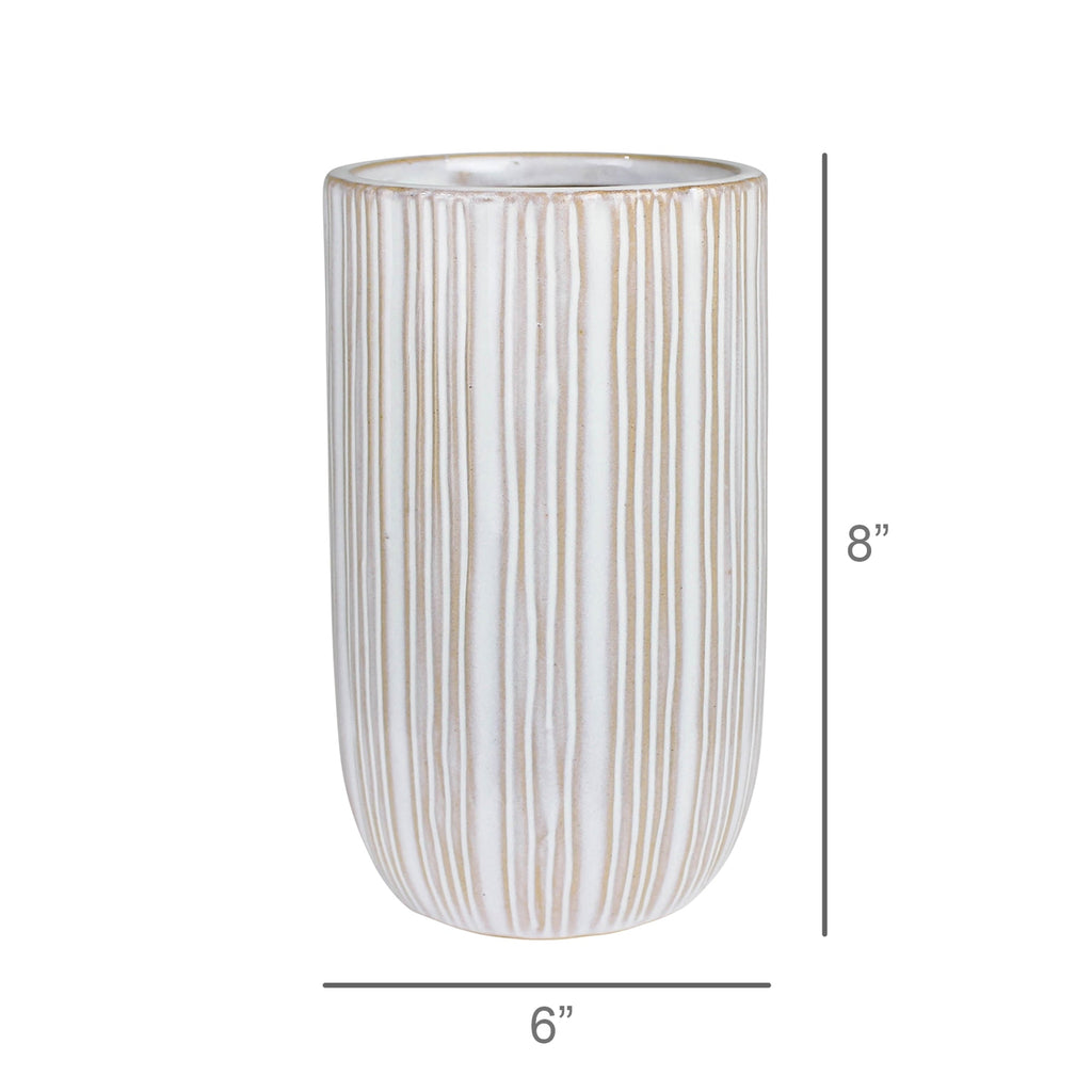What could be a more perfect pairing: stripes and flowers? We agree. Our ceramic vase with a gloss white glaze is ready for a bouquet to be dropped in. Dimensions: 6 x 6 x 8