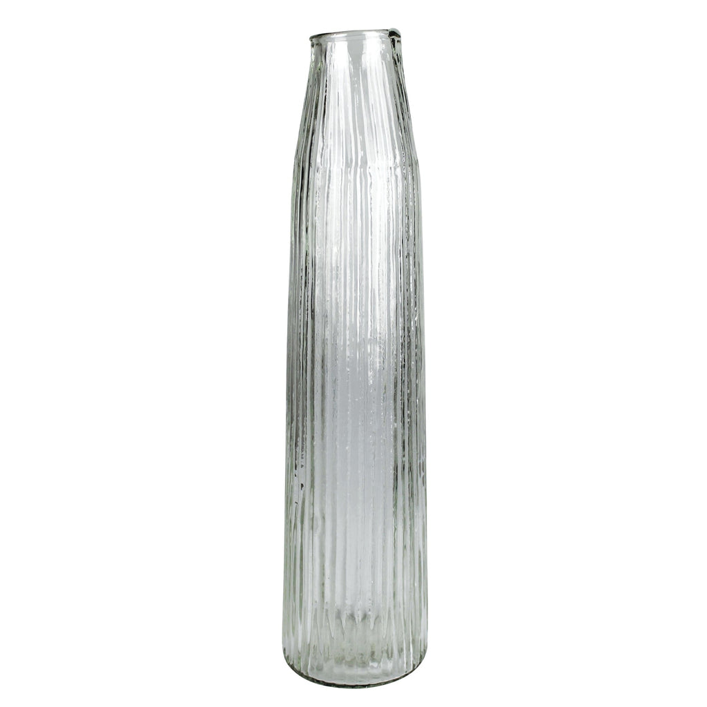 Slender forms of recycled glass are blown into organic molds with gentle ribbing creating slender vases perfect for 1, 2 or 3 stems, the simplest of arrangements. Dimensions: 2.75 x 2.75 x 11.5