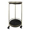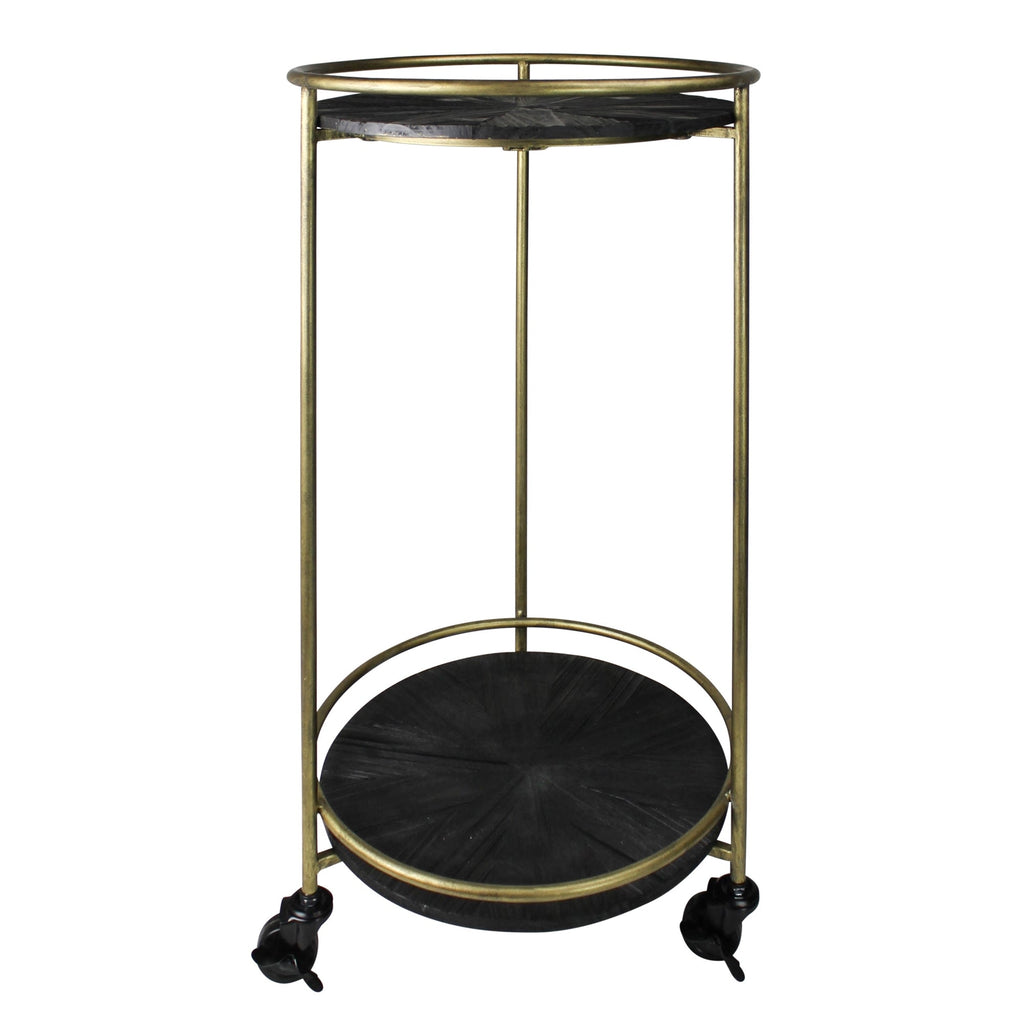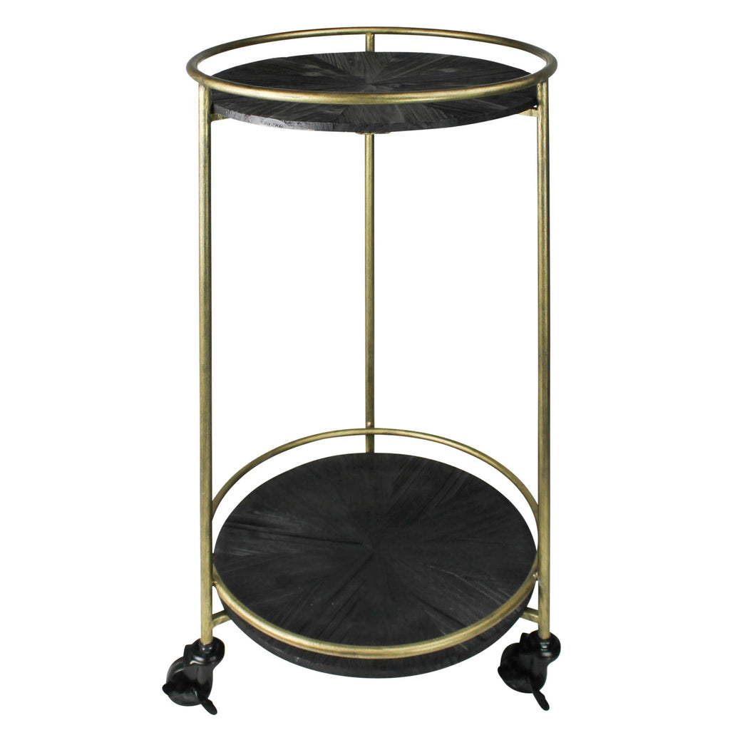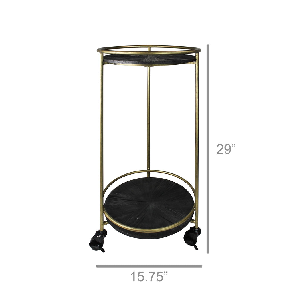 The perfect pairing of stained black wood and brass toned metal our Andy Rolling Cart brings the party to the party as a petite bar cart or mobile side table. Features 3 locking wheels for smooth rolling and stopping. .Dimensions: 15.75 x 15.75 x 29
