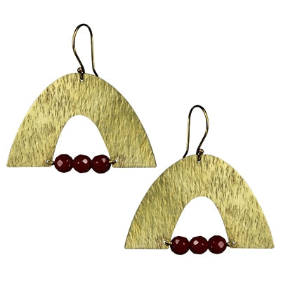 A textured brass arch is united by a row of faceted carnelian in this statement earing. .Dimensions: 2 x 0 x 1.25