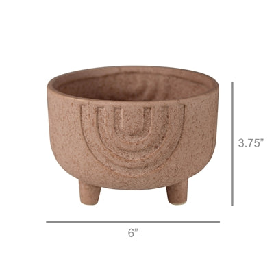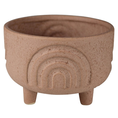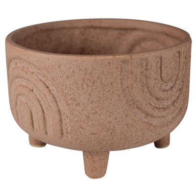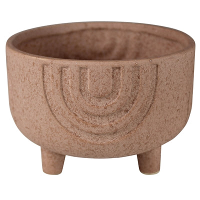 A graphic arc in an inverse pattern surrounds this rust-hued ceramic vessel and elicits the happiness of seeing a rainbow, over and over again. .Dimensions: 6 x 6 x 3.75