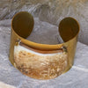 Wide brass cuffs hold natural, hand cut Water Buffalo horn in the grasp of a bezel setting. 2.5x1.75x2.25