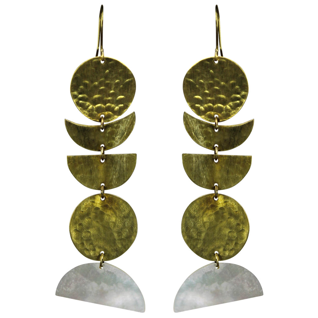 Beldi earrings with a celestial design, featuring intricate brass detailing. Inspired by the stars and moon, these earrings add a mystical, elegant touch to any outfit, perfect for those who love nature and the night sky. .Dimensions: 1.25 x 0 x 3.25