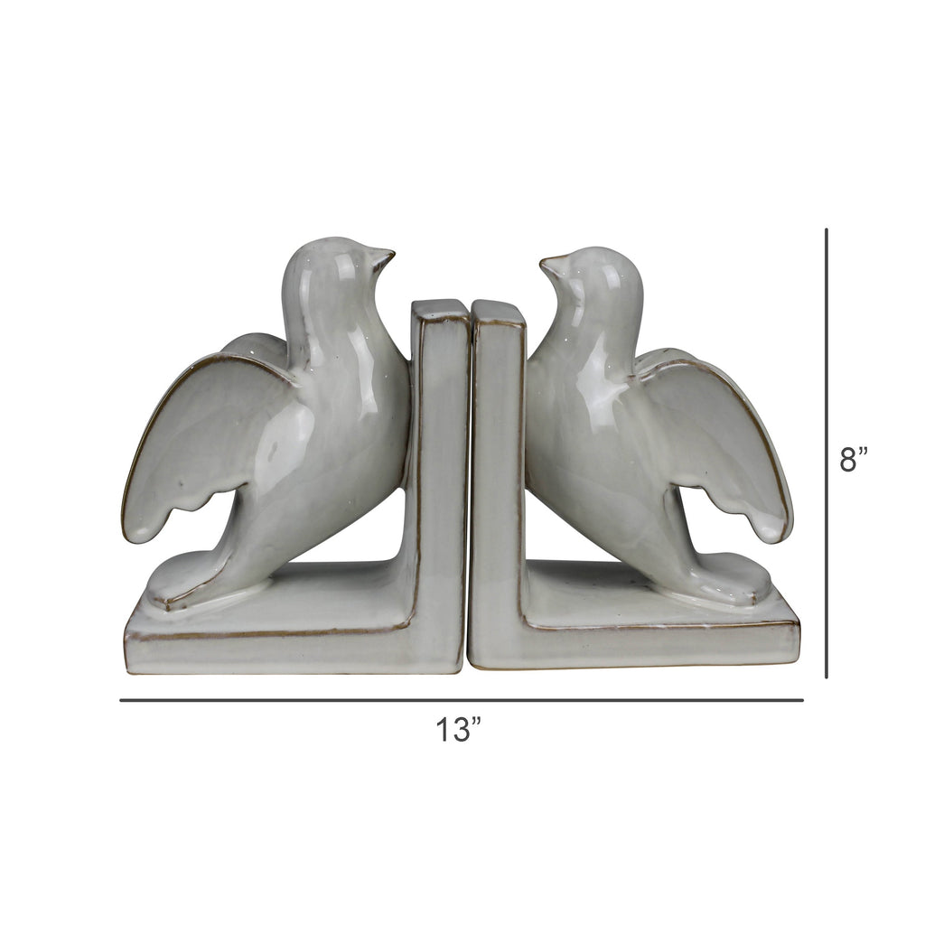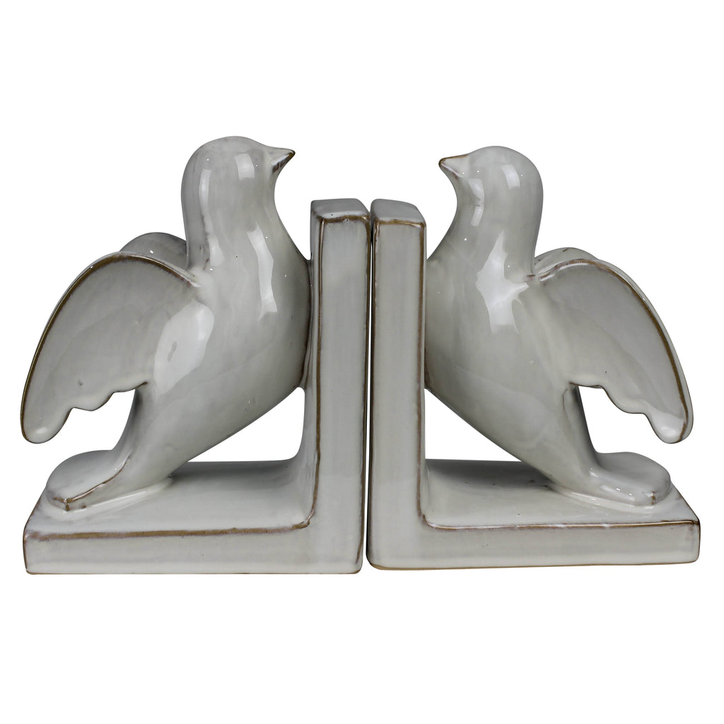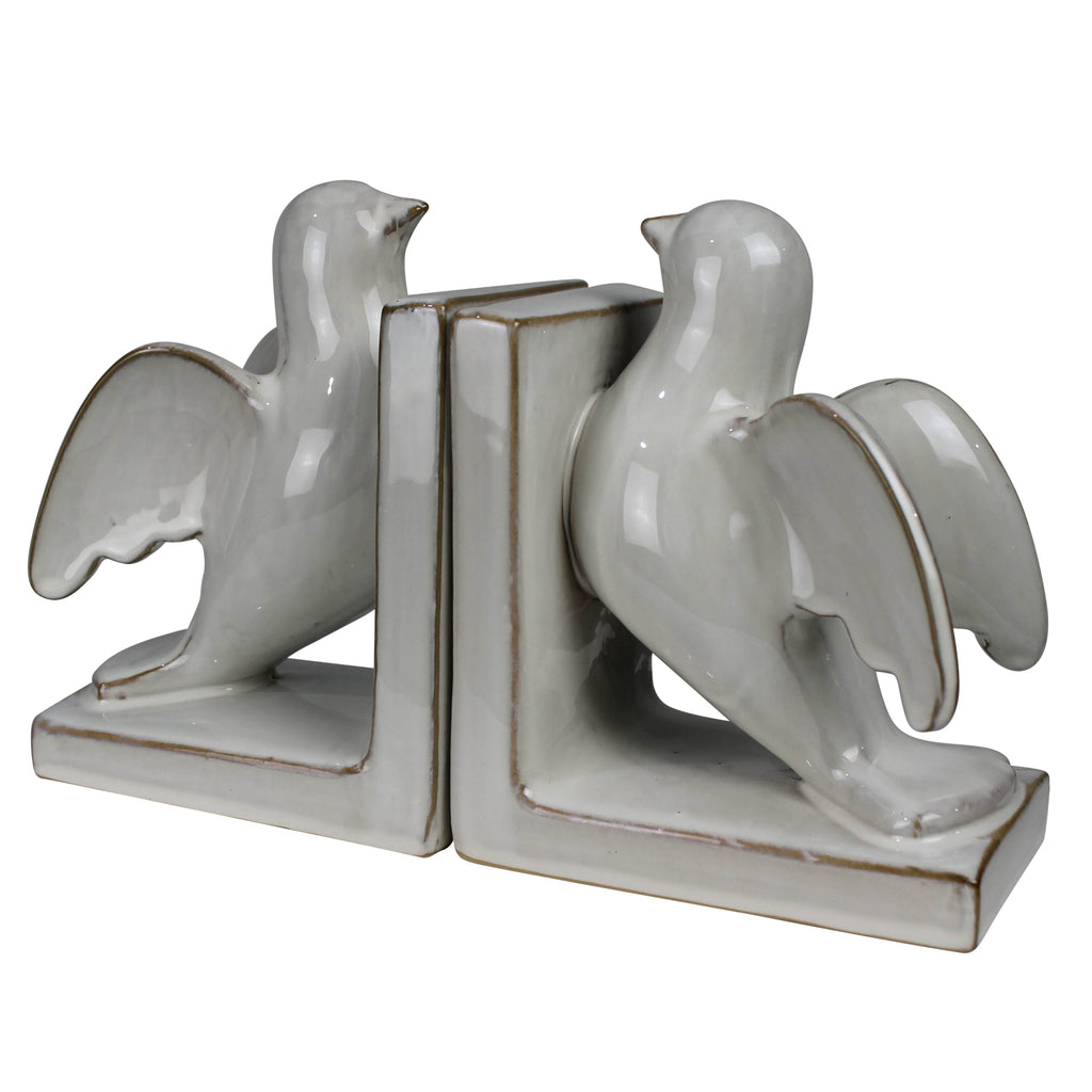 Two mighty birds, cast in ceramic are captured in flight and ready to hold up a row of books. A perfect compliment to any gardener or bird lovers library. .Dimensions: 13 x 4 x 8