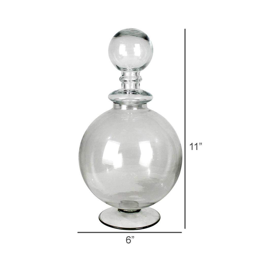 Filled with liquid or pieces of candy, this classic shaped bottle features a glass stopper. An nod to an apothecary or a mixologist, this bottle has endless uses. .Dimensions: 6 x 6 x 11