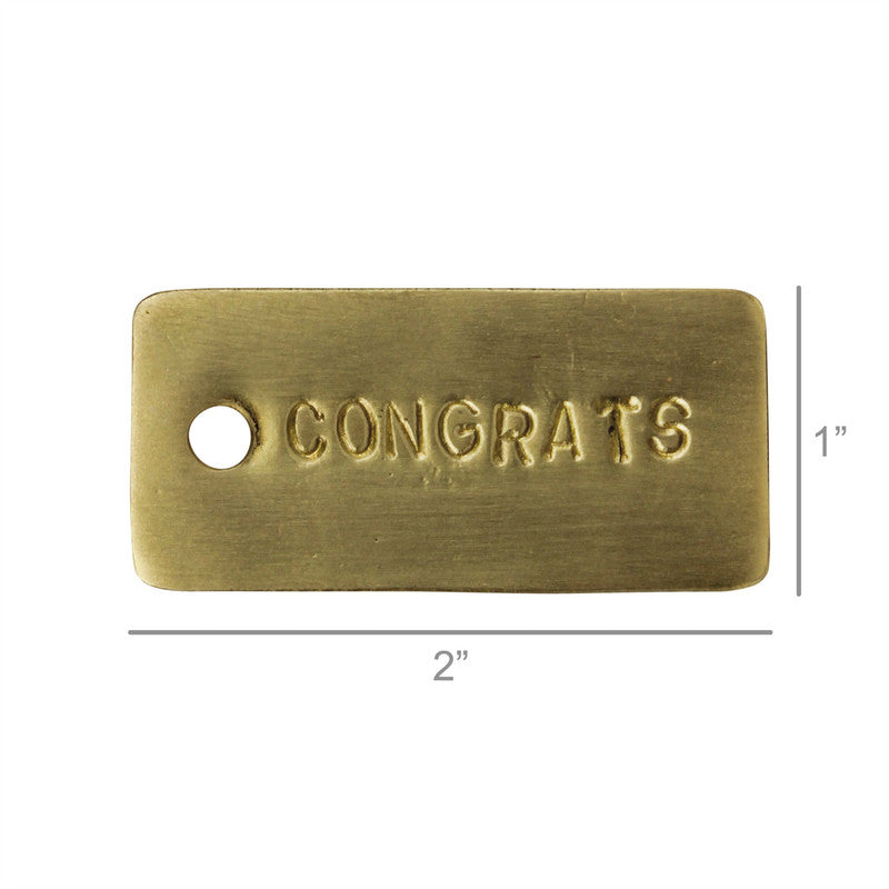 Sweet sentiments are hand stamped onto thin brass to be added as a tag onto a gift or become a gift themselves. Dimensions: 2 x 0 x 1