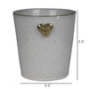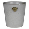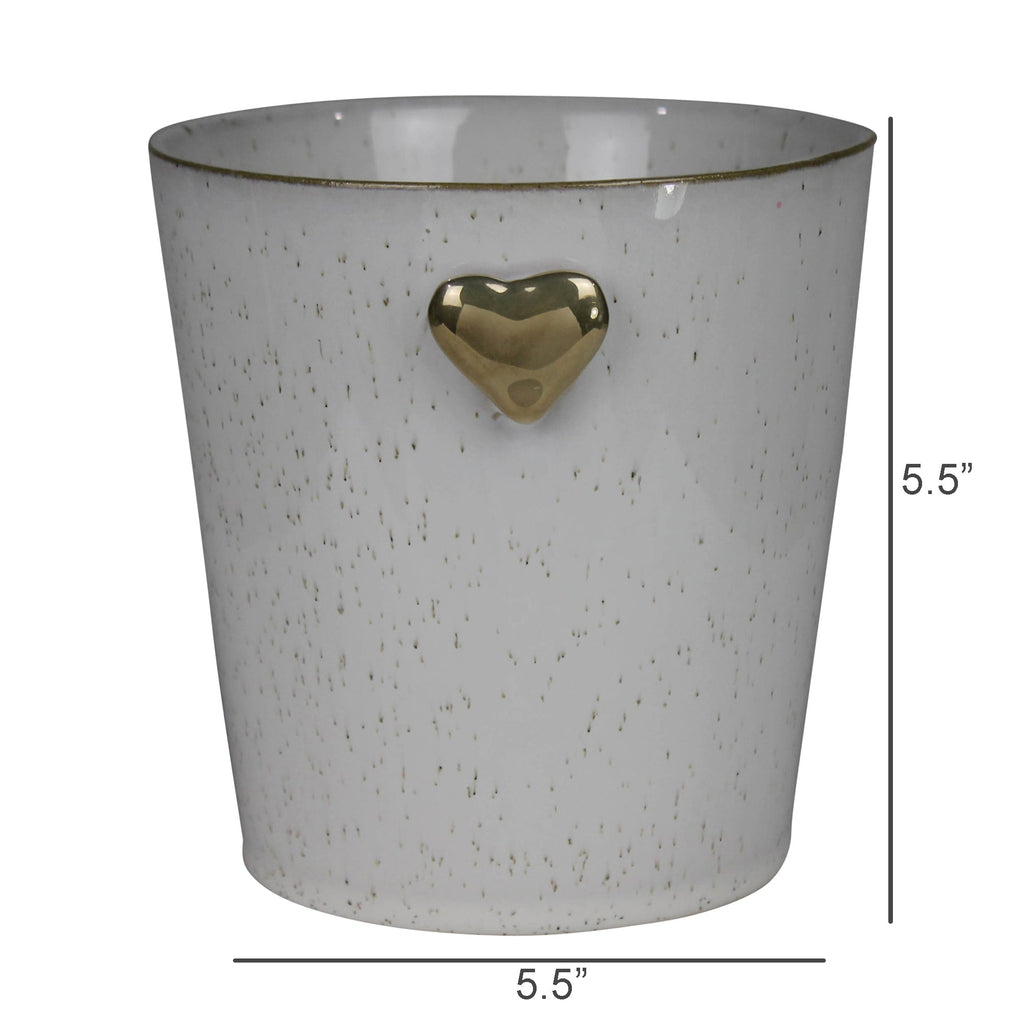 Speckled gloss white ceramic is adorned with a gold heart, the perfect way to say I love you without having to use words. Holds a 4” drop-in pot. .Dimensions: 5.5 x 5.5 x 5.5