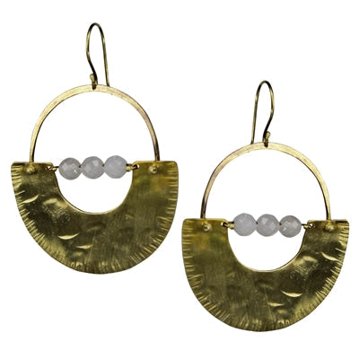 Textured brass is complimented by faceted white onyx hung on a swiveling arch for added movement. .Dimensions: 1.75 x 0 x 2