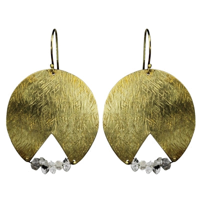 Textured brass makes room for a poised cleft strung with Herkimer diamonds. Each stone is unique. .Dimensions: 1.5 x 0 x 1.5
