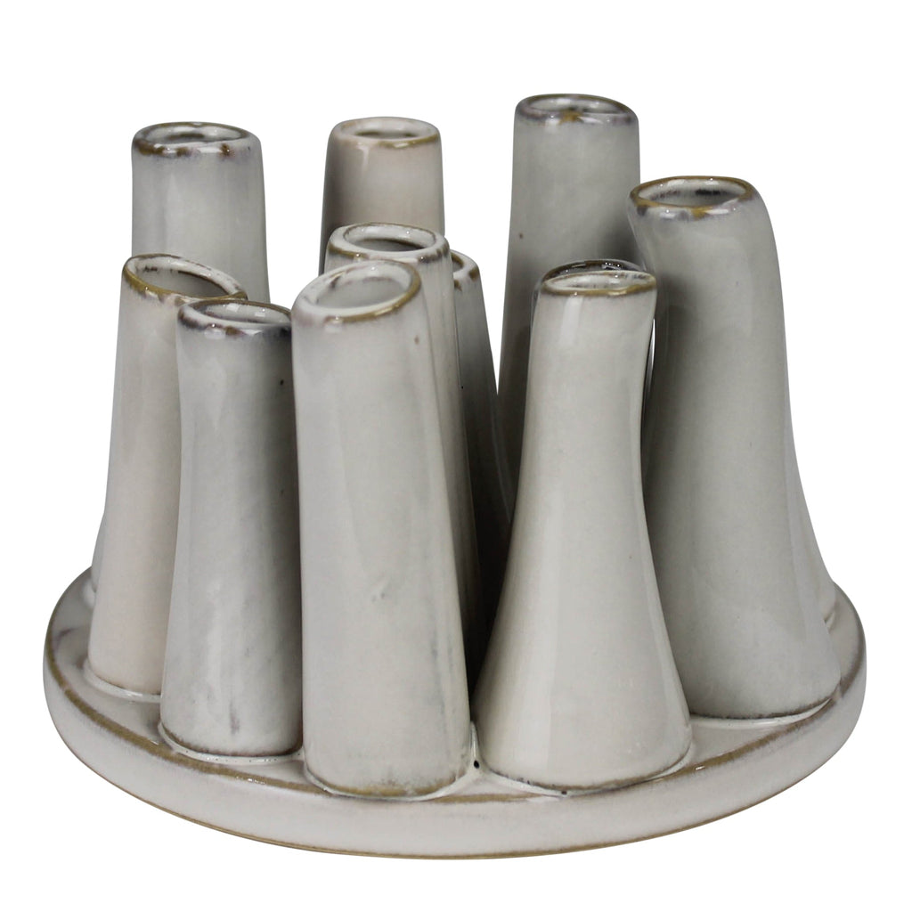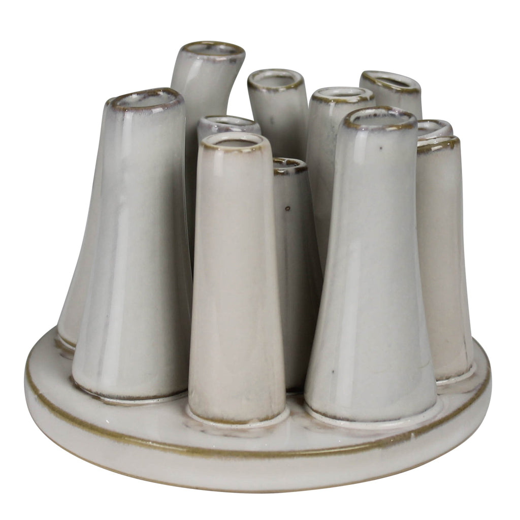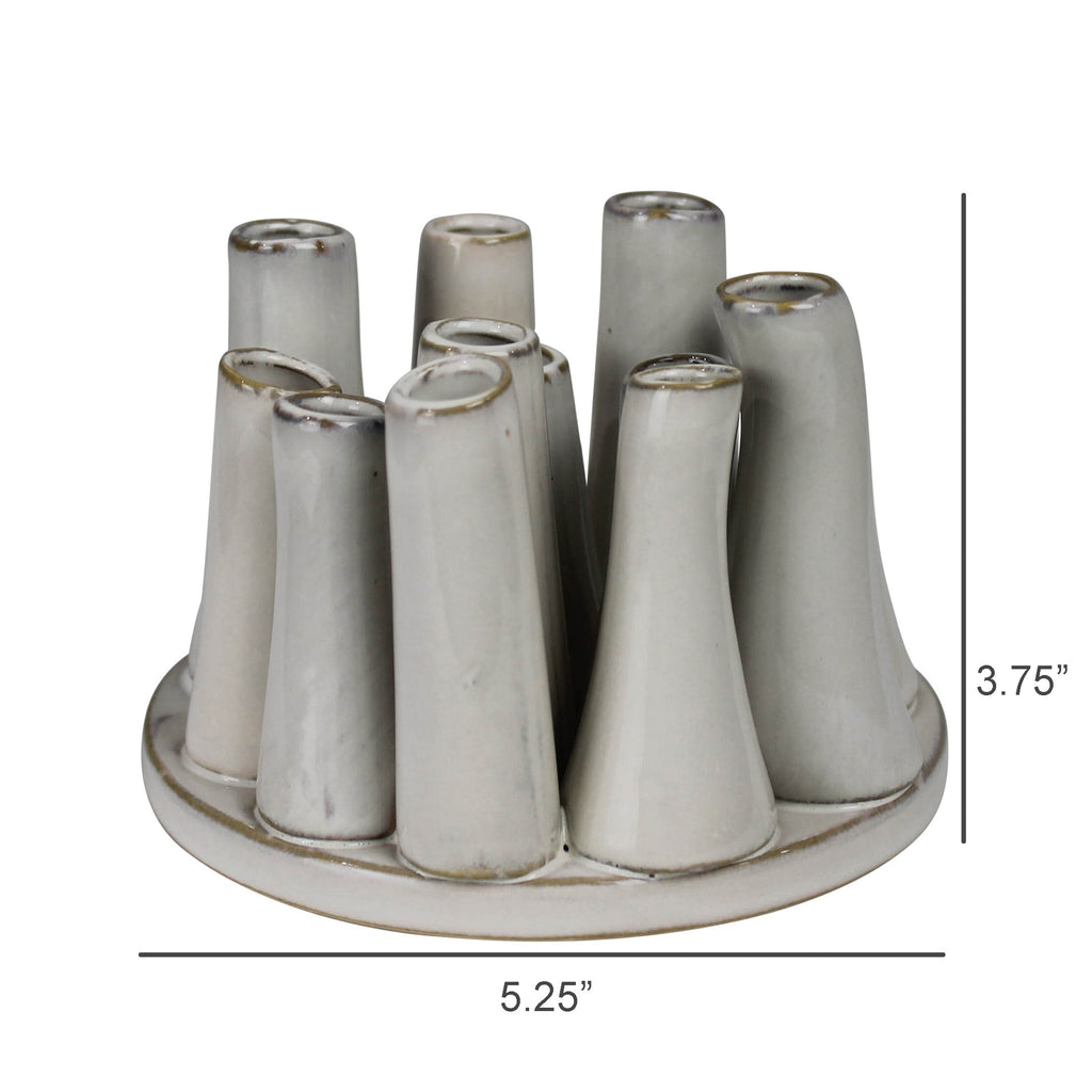 With just a few buds, twigs and pods this cluster of ceramic tubes creates an on-the-spot arrangement. .Dimensions: 5.25 x 5.25 x 3.75