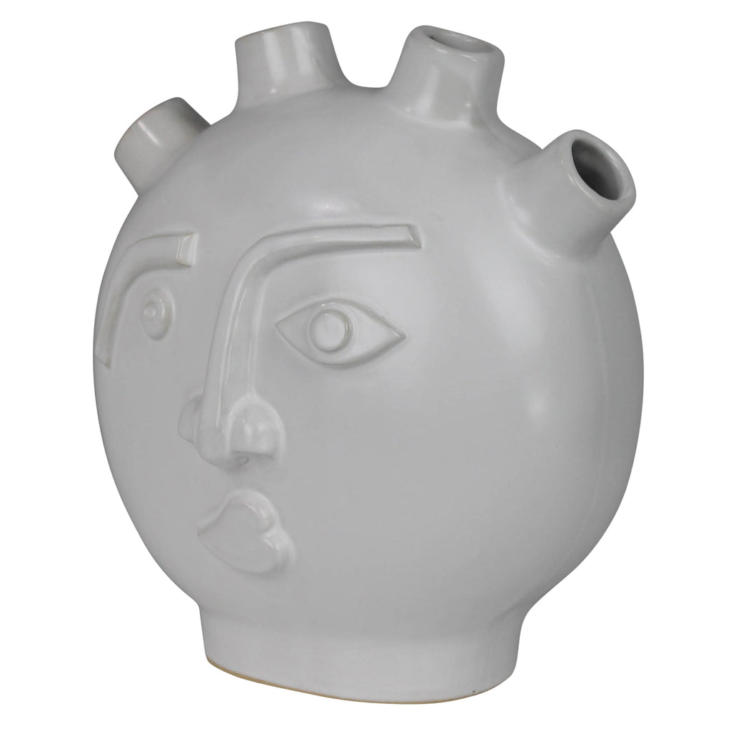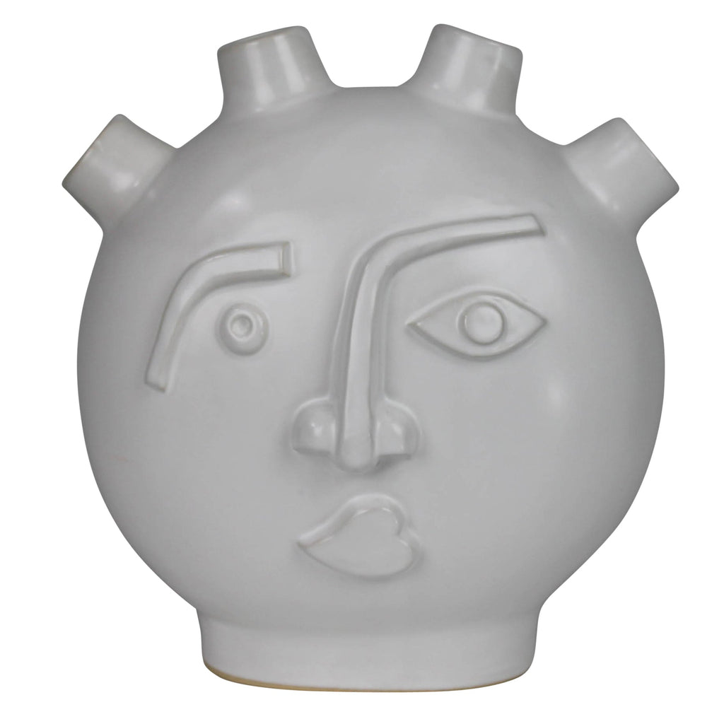 Ceramic vase with a matte white finish, featuring a unique abstract face design. Four single-stem openings allow for minimalist floral arrangements, adding a modern, artistic touch to any space while creating an elegant focal point in your décor. .Dimensions: 7 x 4.5 x 7
