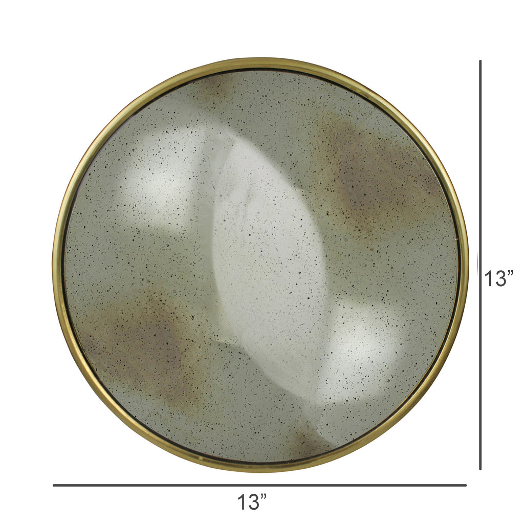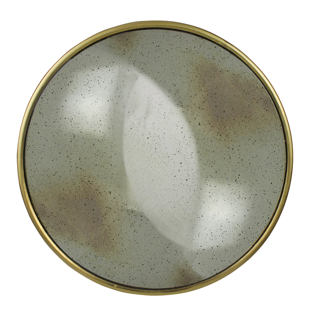 Centuries ago, the convex mirror was used to observe - from butlers to bankers - the convex shape allowed the viewer to keep an eye on a whole room at a glance. We've revived the classic with a slim brass frame and antiqued mirror. .Dimensions: 13 x 2 x 13