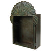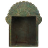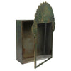 Embossed galvanized metal with a deep, rich patina and glass dooor offers a unique enclave for display, be it devotional or quirky. Sits on a flat surface or hangs with keyhole hangers. .Dimensions: 12 x 4 x 15.5