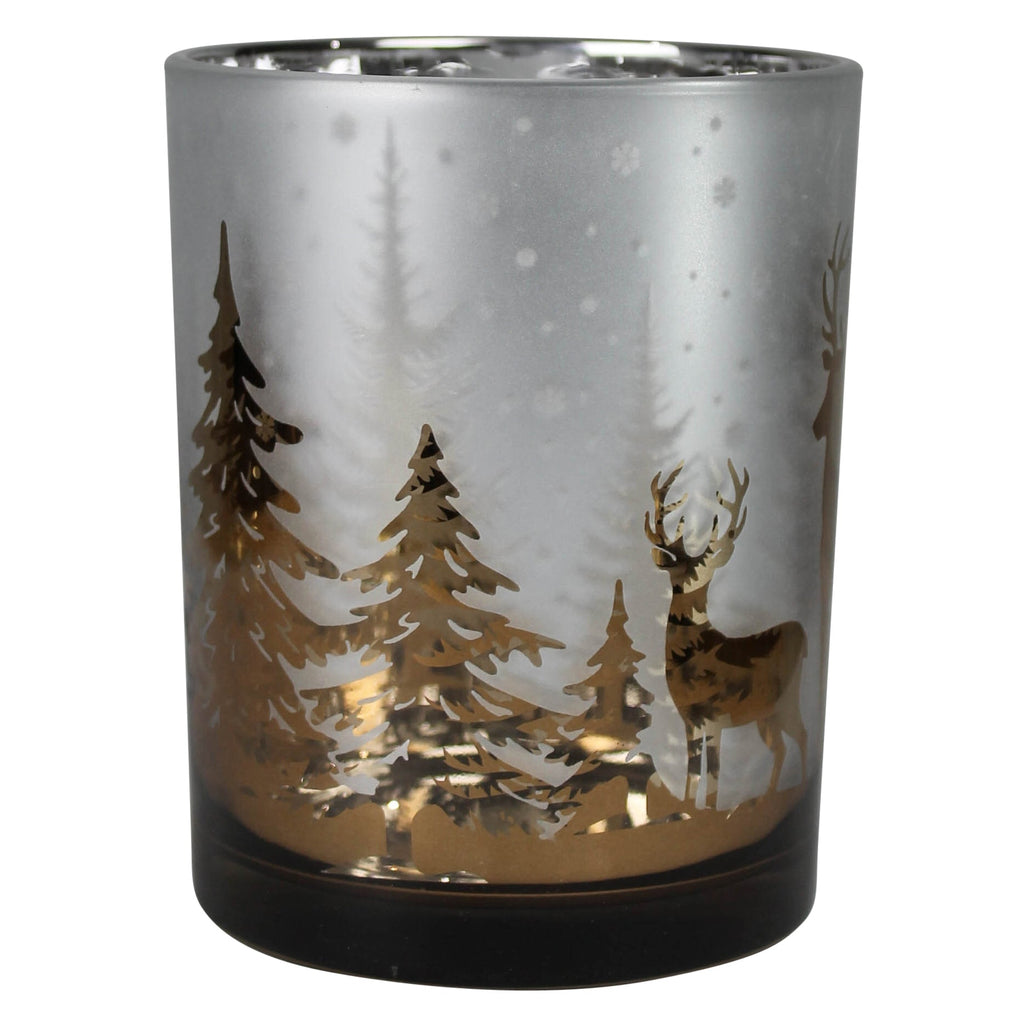 This votive candle holder, adorned with a stunning gold foil image of a deer in the woods, creates a serene, enchanting glow. Its elegant design brings a touch of nature’s beauty and warmth to your space, perfect for any season or festive occasion. .Dimensions: 4 x 4 x 5