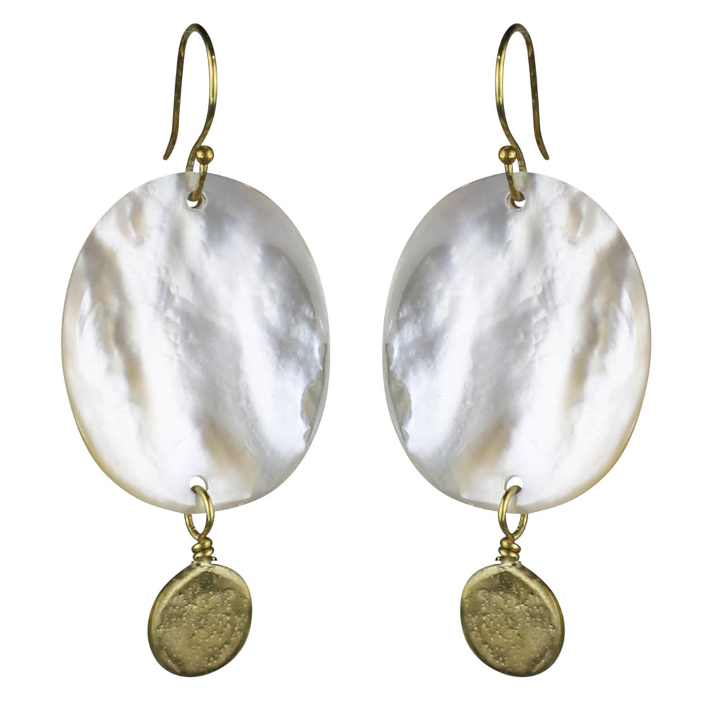Earring, Mother of Pearl & Brass Disks