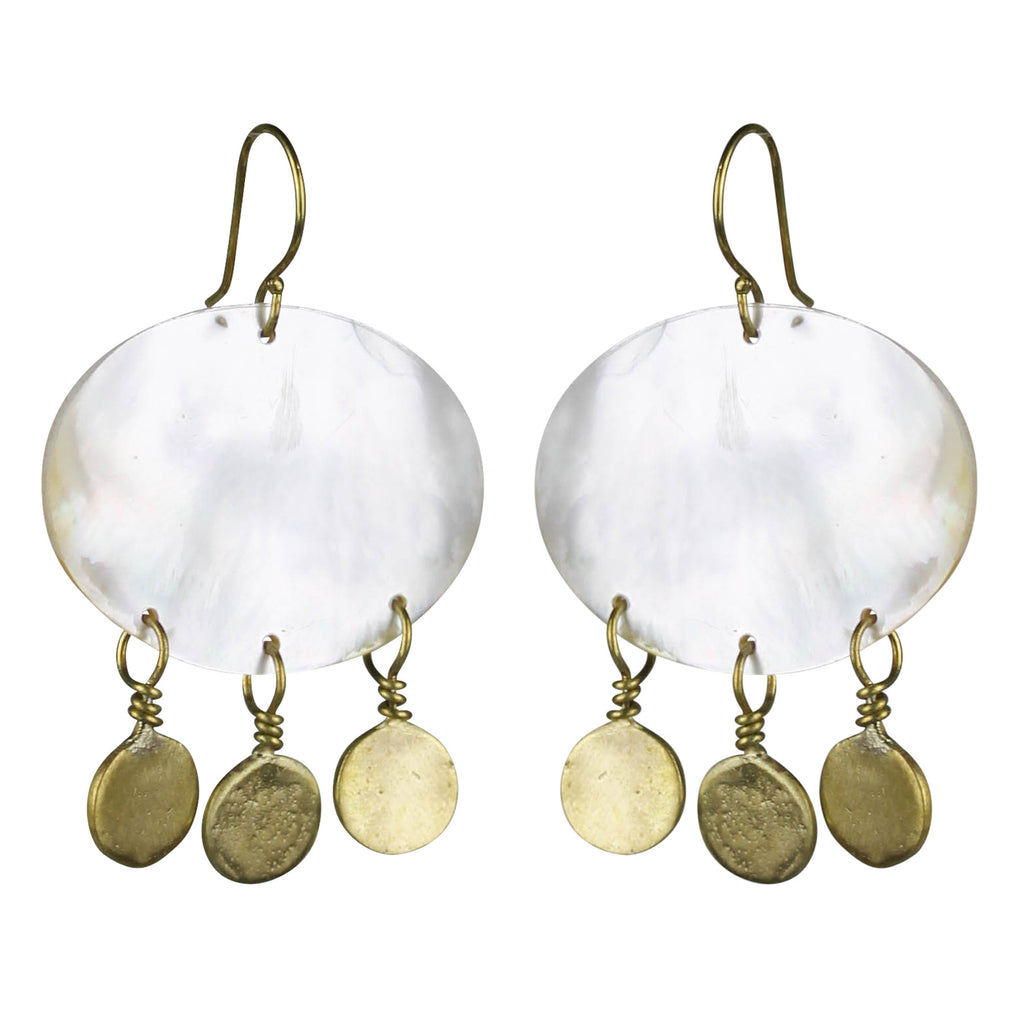 Earring, Mother of Pearl & Brass Disks