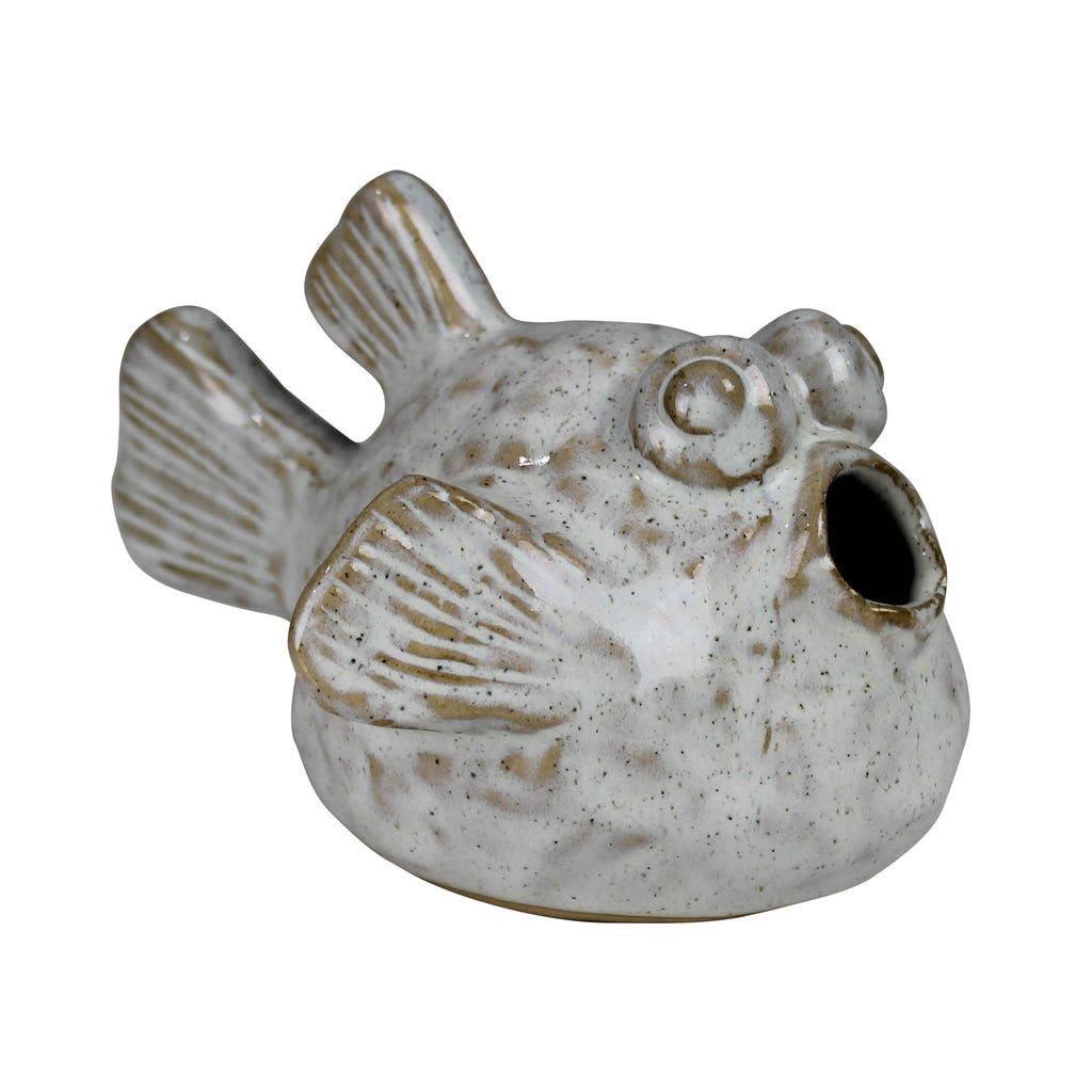 Wit and whimsy follow this animated ceramic fish, with mouth agape it begs for a flower or stem to be placed within it. .Dimensions: 5 x 4 x 3.5