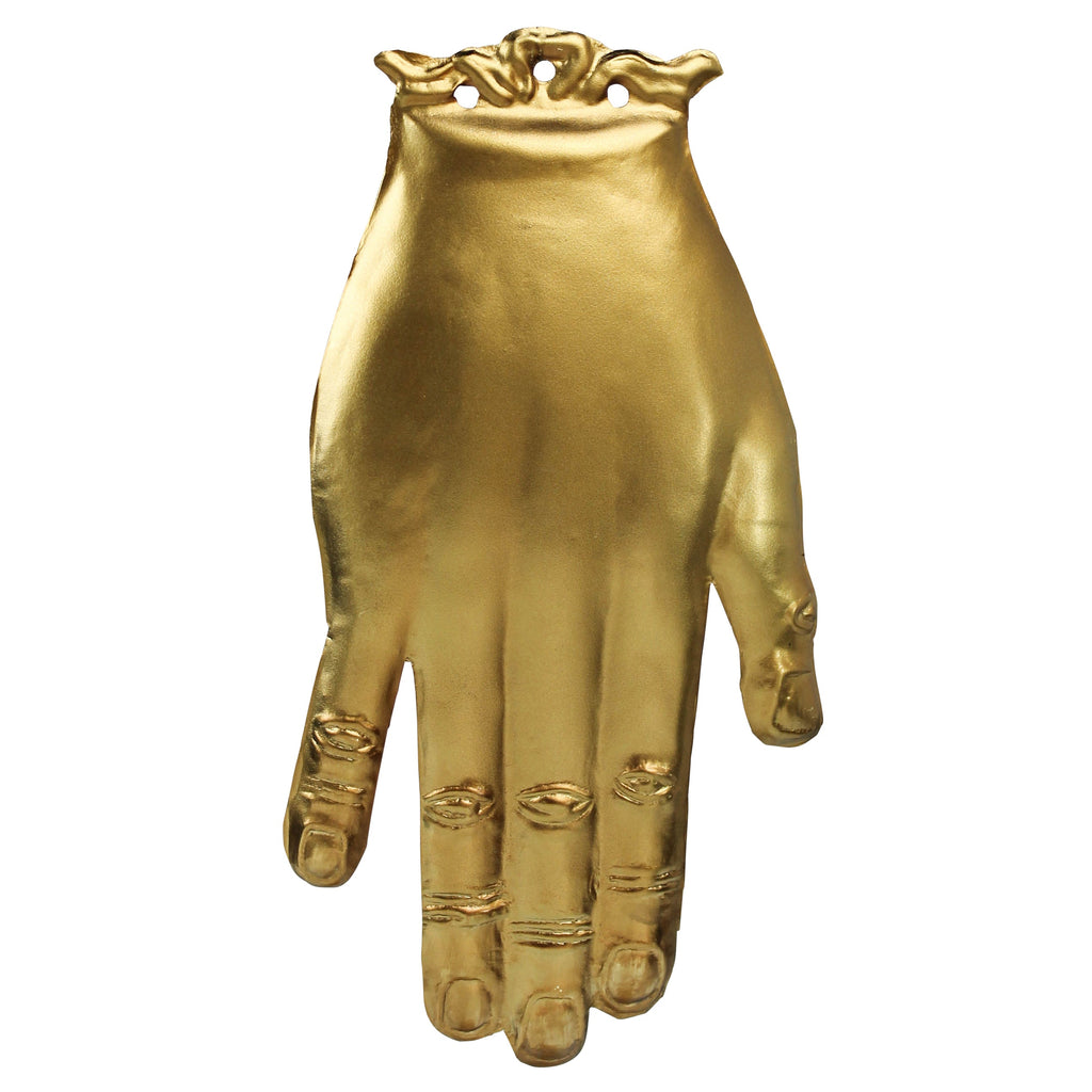 This folk-art relic is made of pressed metal with a brass finish. The hand Milagro symbolizes comfort, creation, strength and friendship. A perfect talisman to give or receive. .Dimensions: 4.25 x 0.25 x 9