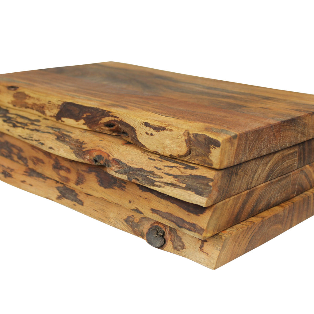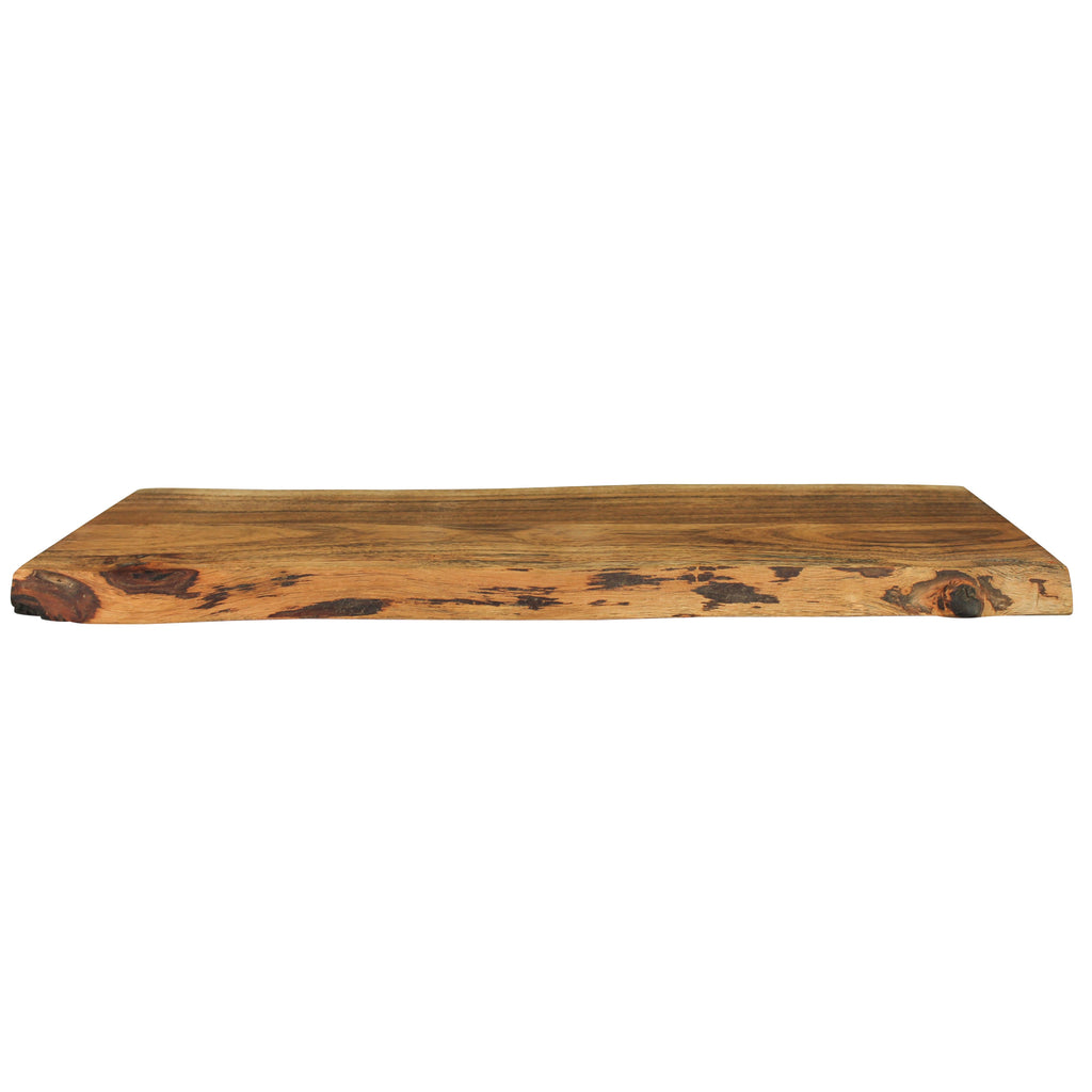 Crafted of acacia wood with a live edge this cutting board is the new entertaining staple. Acacia is known for its exceptional durability. The edge is natural, and each will vary. Rinse with soap and water and dry immediately, apply oil as needed. Prior to packing each piece is rubbed with oil for longevity and the oil may transfer to paper, this is non-harmful. .Dimensions: 24 x 8 x 1