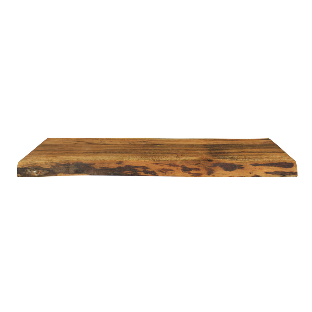 Crafted of acacia wood with a live edge this cutting board is the new entertaining staple. Acacia is known for its exceptional durability. The edge is natural, and each will vary. Rinse with soap and water and dry immediately, apply oil as needed. Prior to packing each piece is rubbed with oil for longevity and the oil may transfer to paper, this is non-harmful. .Dimensions: 20 x 7 x 1