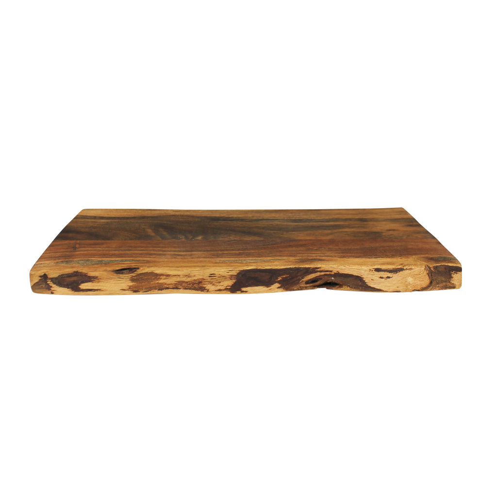 Crafted of acacia wood with a live edge this cutting board is the new entertaining staple. Acacia is known for its exceptional durability. The edge is natural, and each will vary. Rinse with soap and water and dry immediately, apply oil as needed. Prior to packing each piece is rubbed with oil for longevity and the oil may transfer to paper, this is non-harmful. .Dimensions: 16 x 8.5 x 1