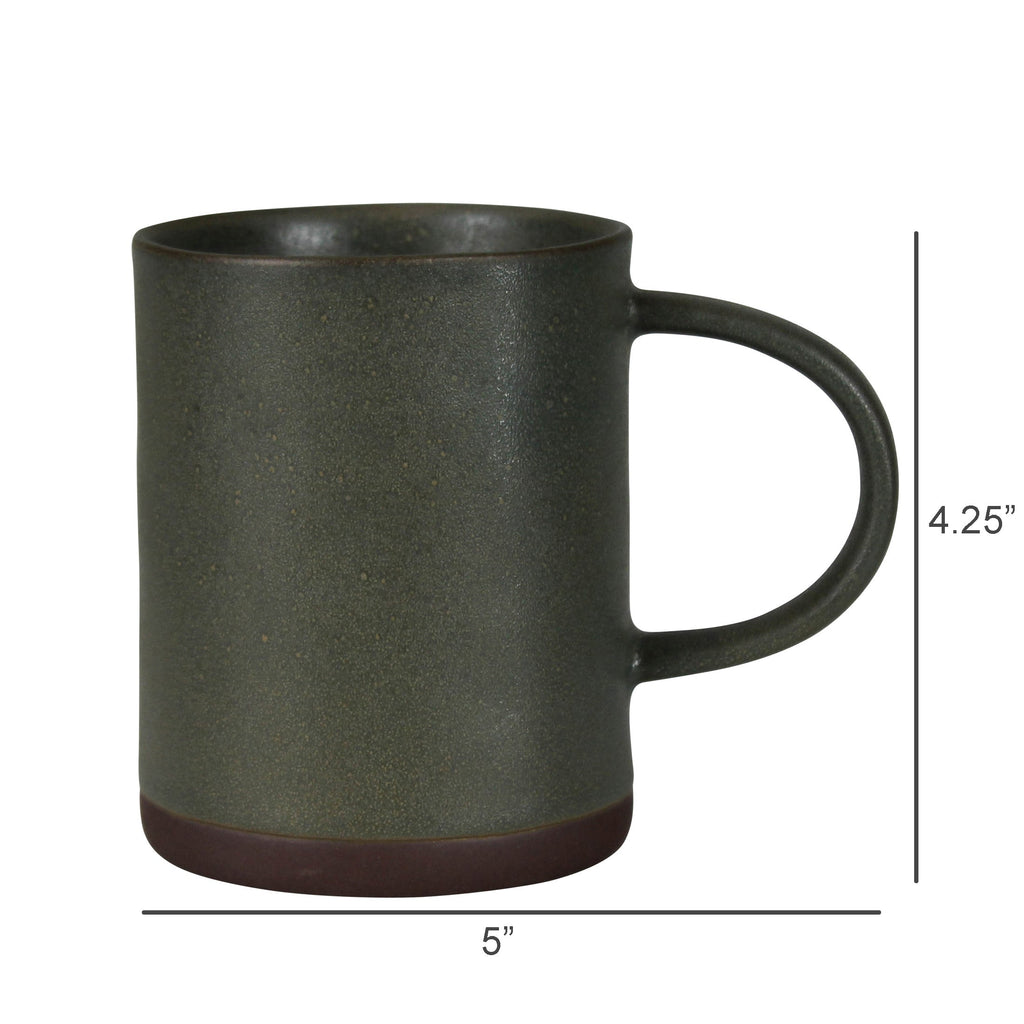 The simple form of this mug emphasizes the natural beauty of clay, with an alluring glaze and comfortable ergonomic shape. This mug will be your go to for coffee and tea. Food and dishwasher safe. 16 oz capacity.Dimensions: 5 x 3.25 x 4.25