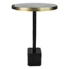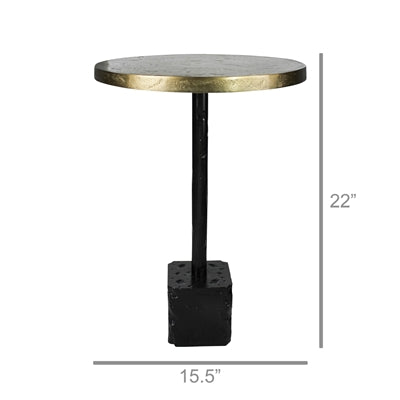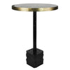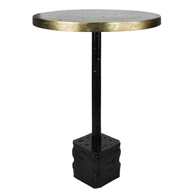 Industrial meets refined. Cast of aluminum, this simple pedestal table features an brass tabletop, which offers striking contrast to its clean-lined, bronze base.