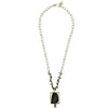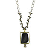 A brass box frames a faceted piece of matte black onyx with a petite tassel and paired with pyrite chain. 1.5" pendant on 18" chain 1.25" pendant on 18" chain.Dimensions: 1 x 0 x 1.25