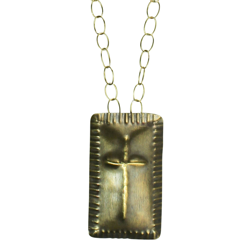 A look that blends Southwest style with tribal aesthetic, the stamping technique on this jewelry creates a pleasing pattern with subtle texture. A versatile collection ready to mix and match. 2.25" pendant on 18" chain. .Dimensions: 1.25 x 0.25 x 2.25