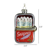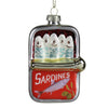 This tiny tin of fish is full of festive charm adding trendy whimsey and culinary twinkle to your tree. Made of blown glass with hand painted and hand applied details. Dimensions 2.5 x 1 x 3.5