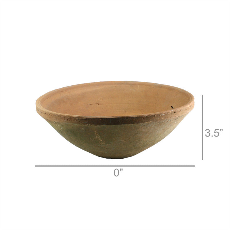 This rustic terra cotta bowl is given its unique character by using a centuries old, handmade process using canvas lined molds and traditionally fired kilns then rubbed by hand with dried moss and let to sit outdoors to naturally age which gives it a Dimensions: 0 x 10 x 3.5