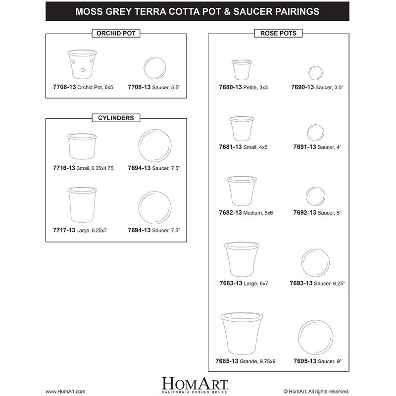 This rustic terra cotta pot is given its unique character by using a centuries old, handmade process using canvas lined molds and traditionally fired kilns then rubbed by hand with dried moss and let to sit outdoors to naturally age which gives it a Dimensions: 0 x 0 x 0