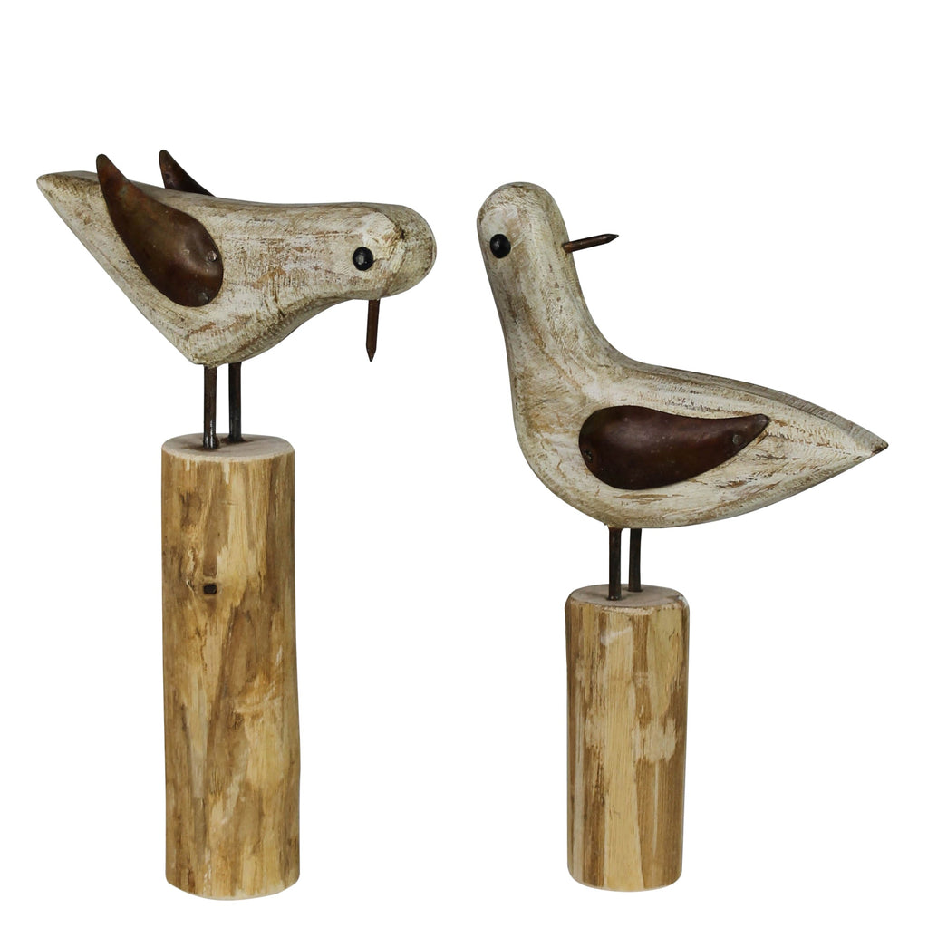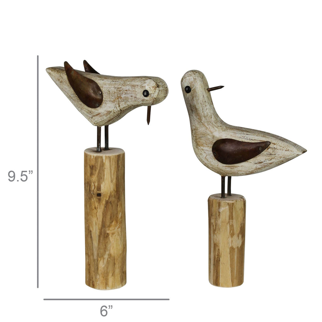 This pair of minimalist seabirds with inquisitive postures are mounted on wood bases, sure to add a touch of seaside whimsy to a bookshelf or mantle. Head down: 5x1.5x9, Head up: 6x1.75x9.5.Dimensions: 6 x 1.75 x 9.5