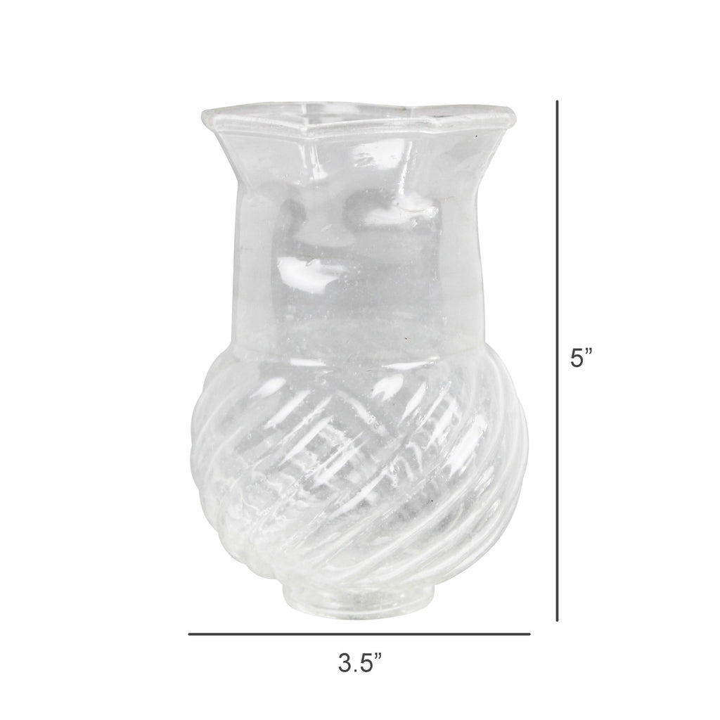 Perfect in their imperfections this seeded glass vase is blown from recycled glass which lends unique qualities to each piece including the occasional peppering of black specs, bubbles and slight slumping. .Dimensions: 3.5 x 3.5 x 5