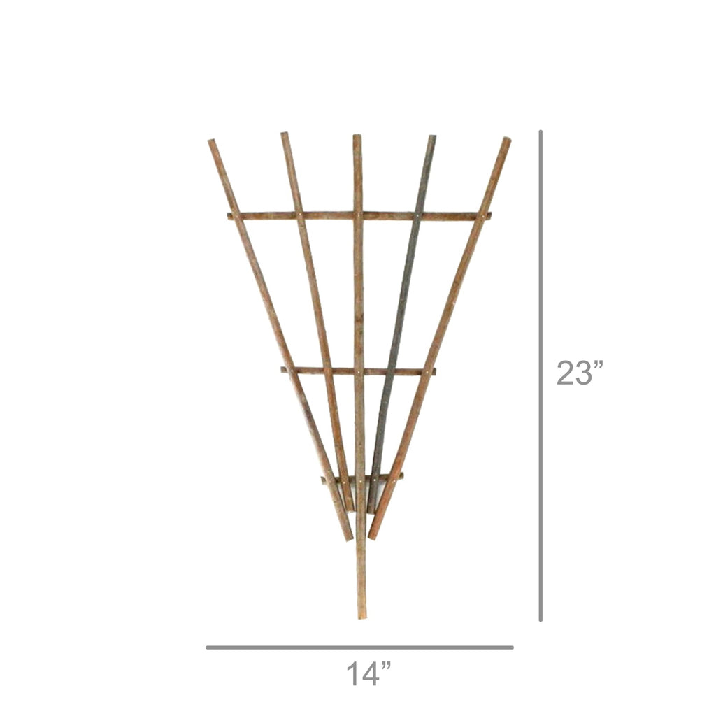 HomArt’s medium Staked Twig Trellis assimilates natural and differently hued twigs into a beautiful piece for any garden or home. Notched and bumped, each semi-straight piece assembling the Staked Twig Trellis is accented by a unique growth pattern allowing the trellis to be as unique as all of its pieces combined. HomArt’s medium Staked Twig Trellis looks great ivied or in a pot allowing a ravenous plan to consume it and measures 14 x 23 inches. .Dimensions: 0 x 14 x 23