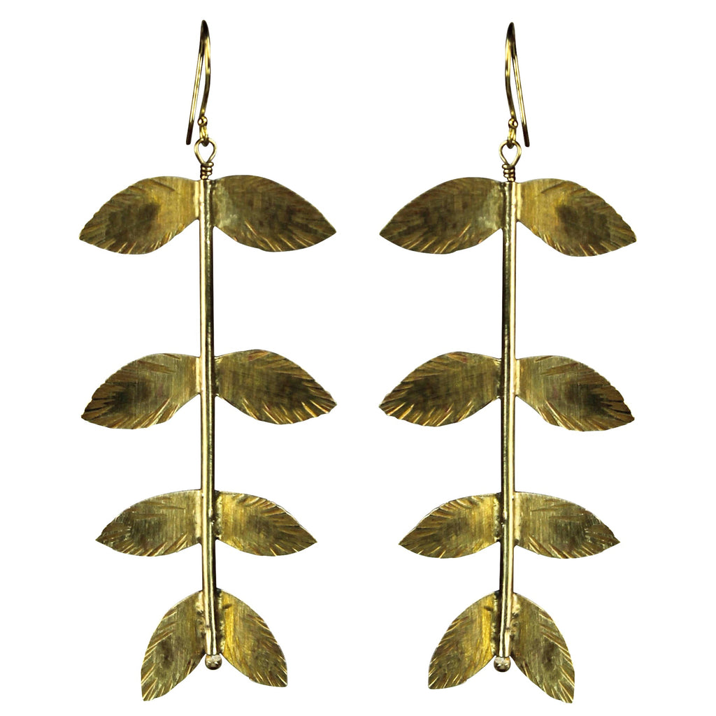Hammered brass earrings featuring a design of a stem with leaves gracefully growing from it. The textured finish adds depth and character, creating an elegant, nature-inspired accessory that brings a touch of organic beauty to any look. .Dimensions: 1.25 x 0 x 3