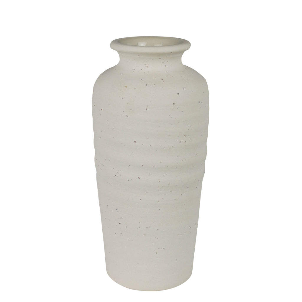An understated white ceramic vase with a hand-thrown feel and subtle texture brings effortless elegance to any space. Its simple, organic design adds timeless beauty, perfect for showcasing flowers or as a refined standalone accent. .Dimensions: 5.5 x 5.5 x 11