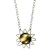 Brass necklace featuring a hammered brass sunflower pendant on a delicate chain. Its subtle texture and floral design add a touch of nature-inspired elegance, perfect for layering or as a standout piece in any jewelry collection. 2.5" pendant on 18" adjustable chain.Dimensions: 0 x 0 x 0