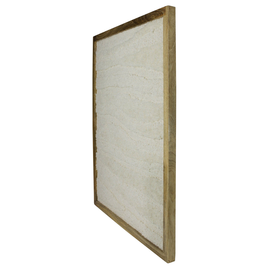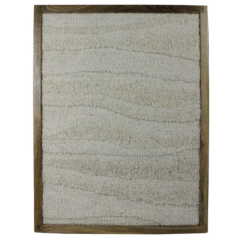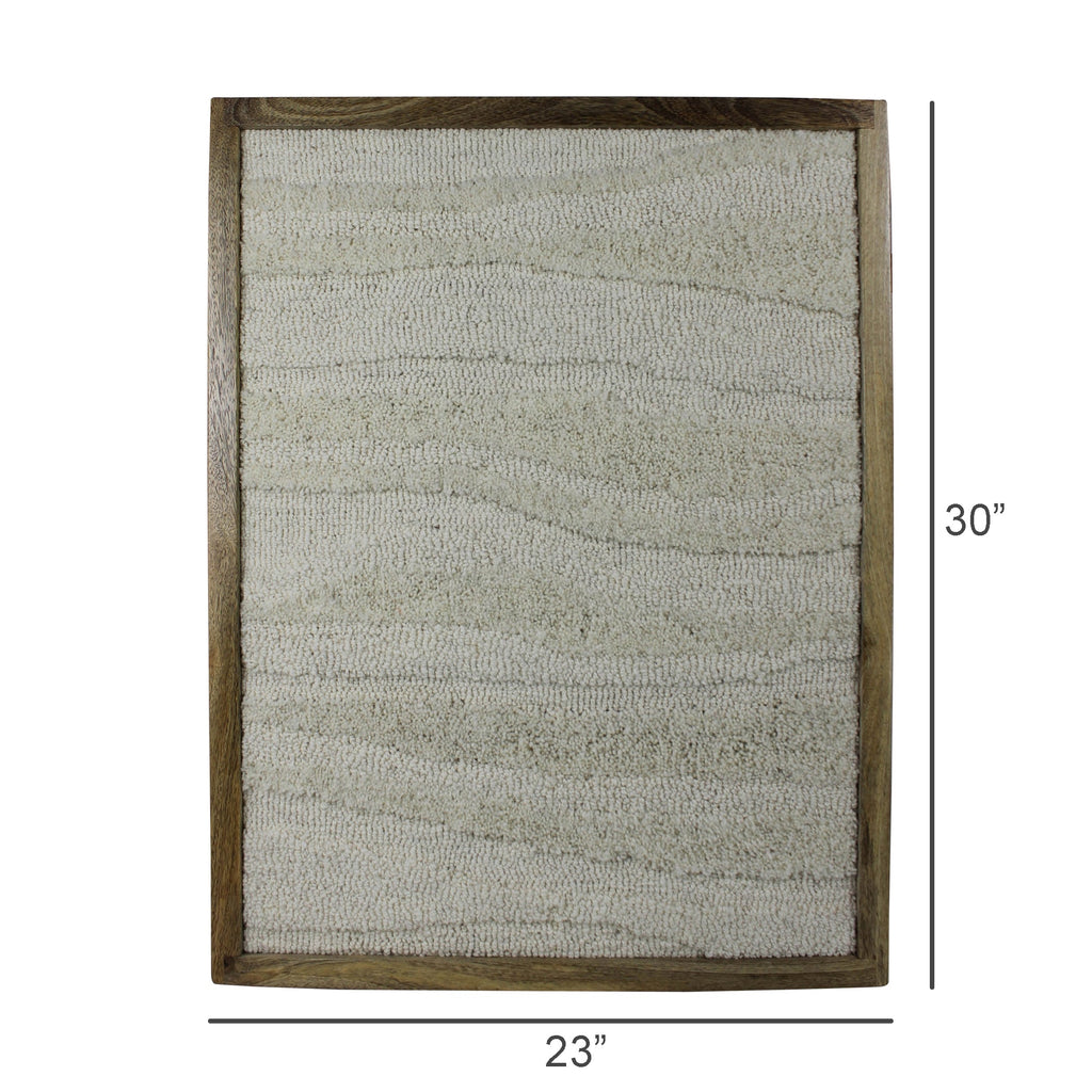 Tuffted wool is loomed into a wave-like pattern and framed in solid acacia wood. This statement-worthy piece is hand loomed so beautiful variations are to be embraced. .Dimensions: 23 x 1 x 30